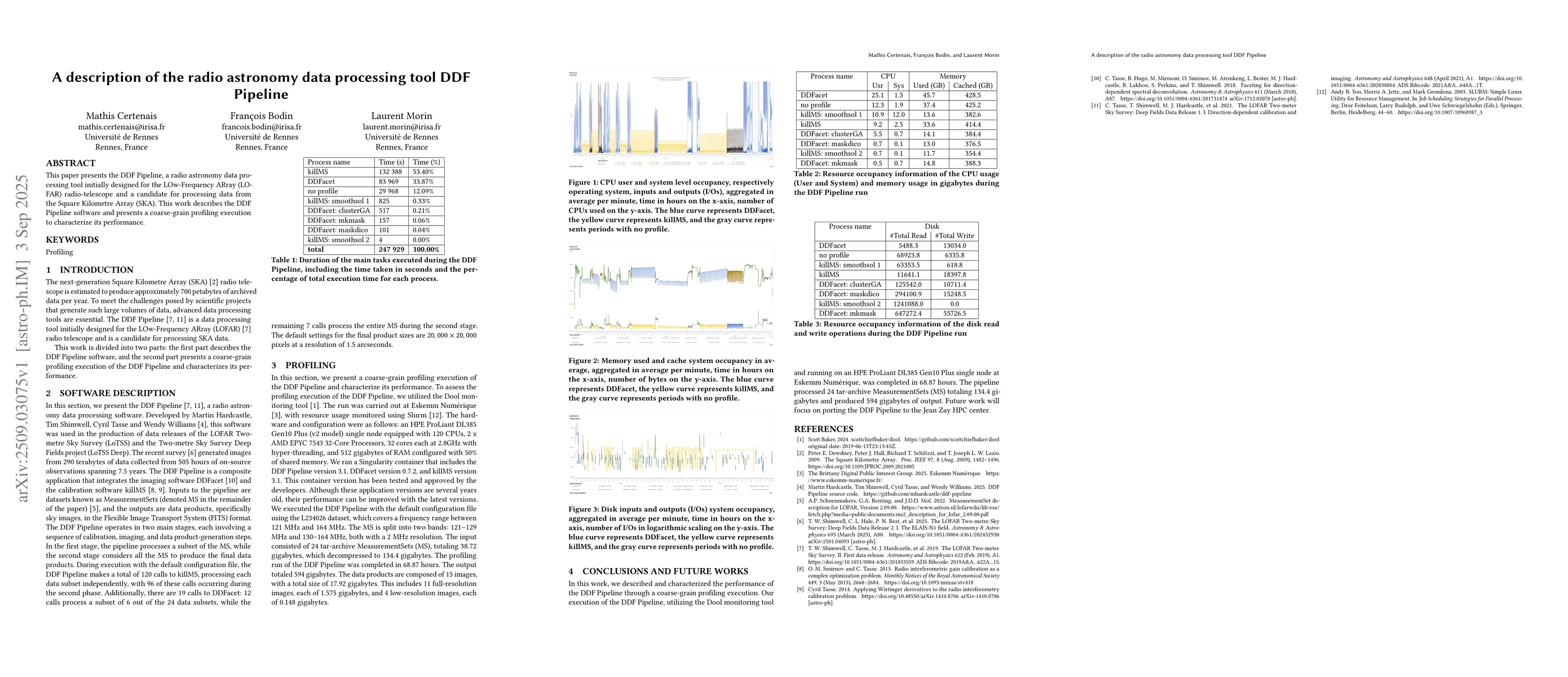 This paper presents the DDF Pipeline, a radio astronomy data processing tool initially designed for the LOw-Frequency ARray (LO- FAR) radio-telescope and a candidate for processing data from the Square Kilometre Array (SKA). This work describes the DDF Pipeline software and presents a coarse-grain profiling execution to characterize its performance.