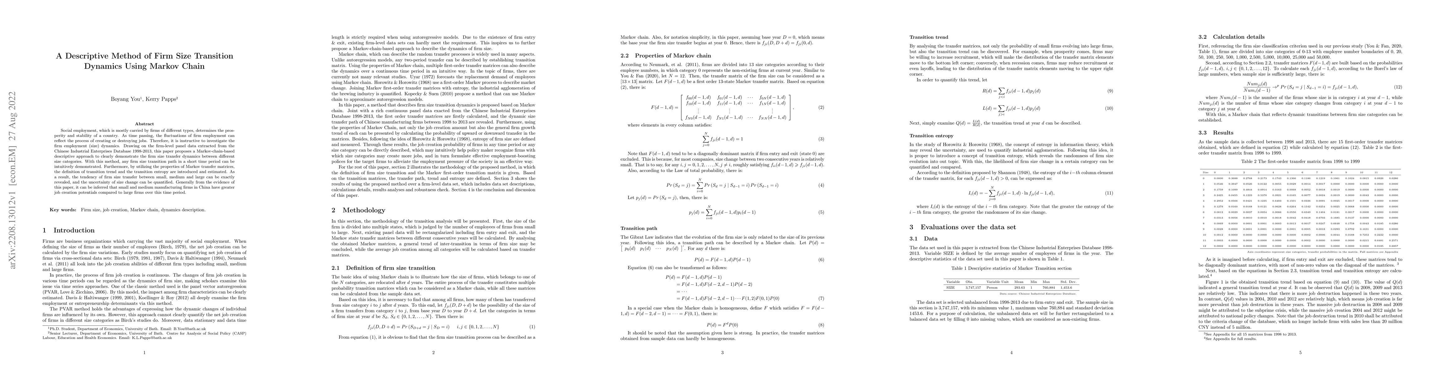 This paper proposes a Markov-chain-based descriptive method to analyze the dynamics of firm size transitions using Chinese Industrial Enterprises Database from 1998-2013. The study reveals that small and medium firms have higher job creation potential compared to large firms, quantified through transition trends and entropy.