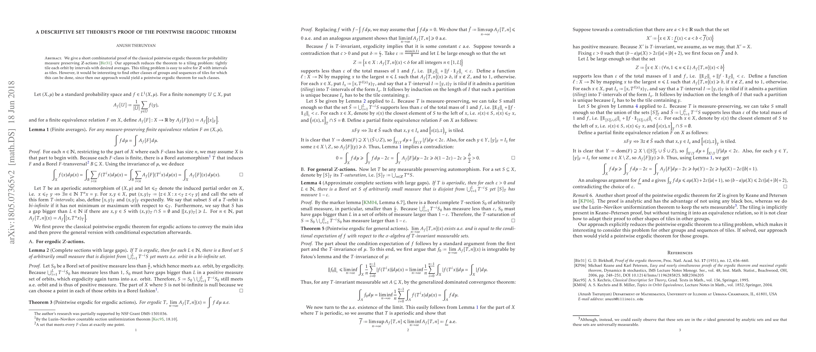 This paper presents a combinatorial proof of the pointwise ergodic theorem for $\mathbb{Z}$-actions by reducing it to a tiling problem, where orbits are tightly tiled with intervals achieving desired averages. The authors suggest extending this method to other groups and tile types for broader applications.