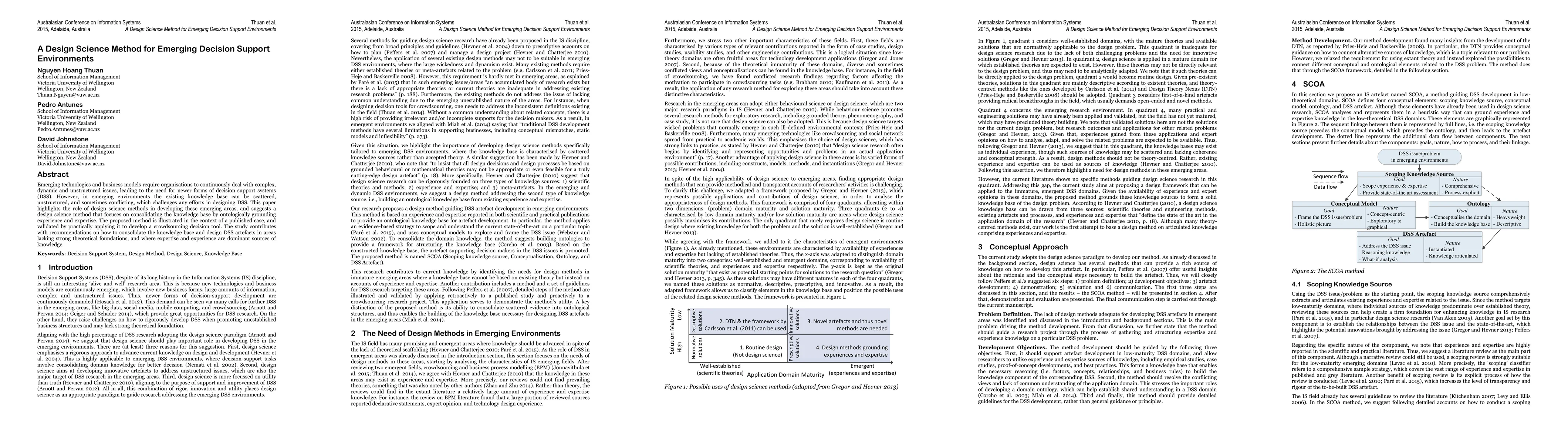 Emerging technologies and business models require organisations to continuously deal with complex, dynamic and unstructured issues, leading to the need for newer forms of decision support systems (DSS). However, in emerging environments the existing knowledge base can be scattered, unstructured, and sometimes conflicting, which challenges any efforts in designing DSS. This paper highlights the role of design science methods in developing these emerging areas, and suggests a design science method that focuses on consolidating the knowledge base by ontologically grounding experience and expertise. The proposed method is illustrated in the context of a published case, and validated by practically applying it to develop a crowdsourcing decision tool. The study contributes with recommendations on how to consolidate the knowledge base and design DSS artefacts.