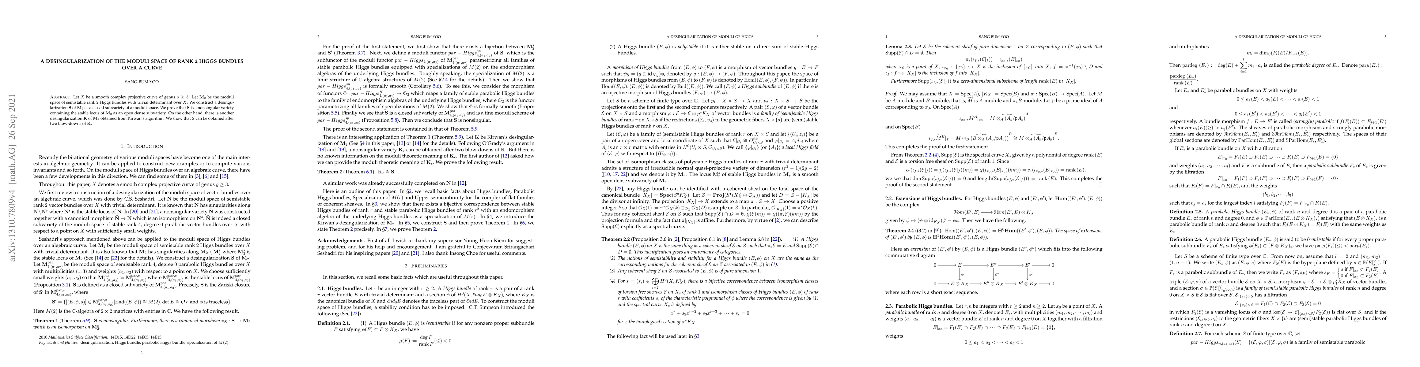 This paper constructs a desingularization $\mathbf{S}$ of the moduli space $\mathbf{M}_2$ of rank 2 Higgs bundles over a smooth complex projective curve, proving it is a nonsingular variety containing the stable locus of $\mathbf{M}_2$. It also compares $\mathbf{S}$ with another desingularization $\mathbf{K}$ obtained via Kirwan's algorithm, showing $\mathbf{S}$ results from two blow-downs of $\mathbf{K}$.