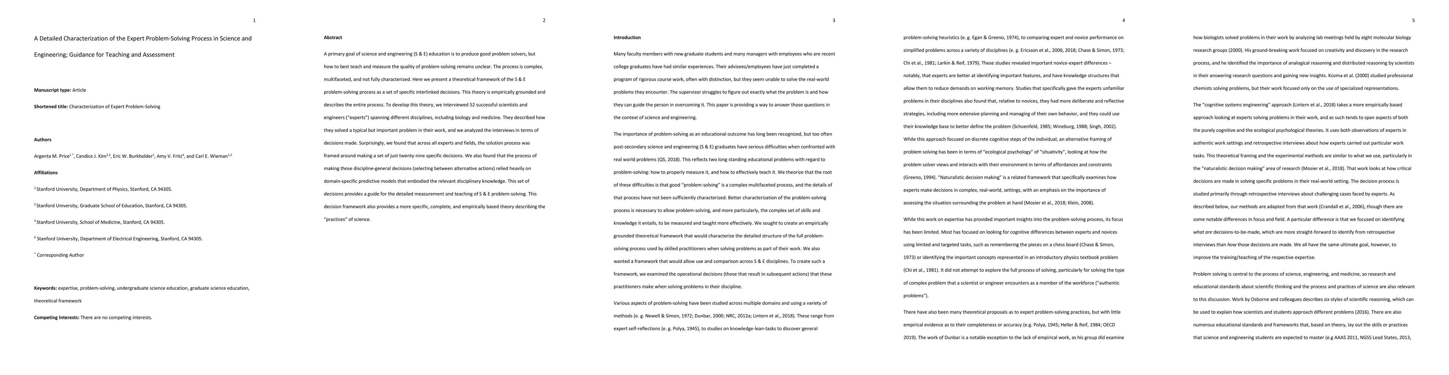 A primary goal of science and engineering (S & E) education is to produce good problem solvers, but how to best teach and measure the quality of problem-solving remains unclear. The process is complex, multifaceted, and not fully characterized. Here we present a theoretical framework of the S & E problem-solving process as a set of specific interlinked decisions. This theory is empirically grounded and describes the entire process. To develop this theory, we interviewed 52 successful scientists and engineers (experts) spanning different disciplines, including biology and medicine. They described how they solved a typical but important problem in their work, and we analyzed the interviews in terms of decisions made. Surprisingly, we found that across all experts and fields, the solution process was framed around making a set of just twenty-nine specific decisions. We also found that the process of making those discipline-general decisions (selecting between alternative actions) relied heavily on domain-specific predictive models that embodied the relevant disciplinary knowledge. This set of decisions provides a guide for the detailed measurement and teaching of S & E problem-solving. This decision framework also provides a more specific, complete, and empirically based theory describing the practices of science.