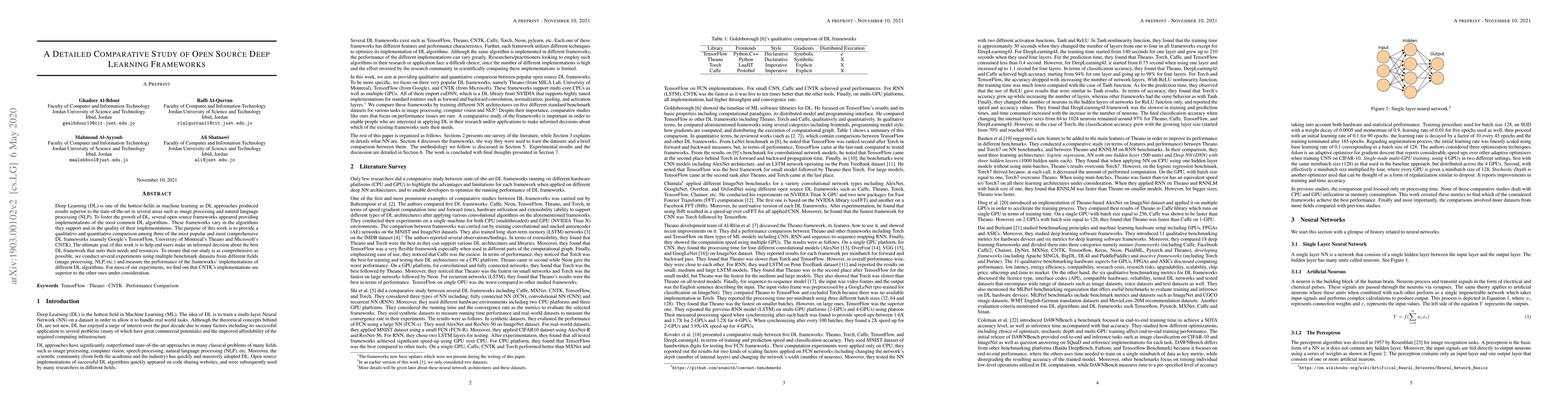 This study compares three leading open source deep learning frameworks—TensorFlow, Theano, and CNTK—by evaluating their performance on various algorithms and datasets. CNTK generally outperforms the others in the experiments conducted. The research aims to assist users in selecting the most suitable framework for their specific needs.