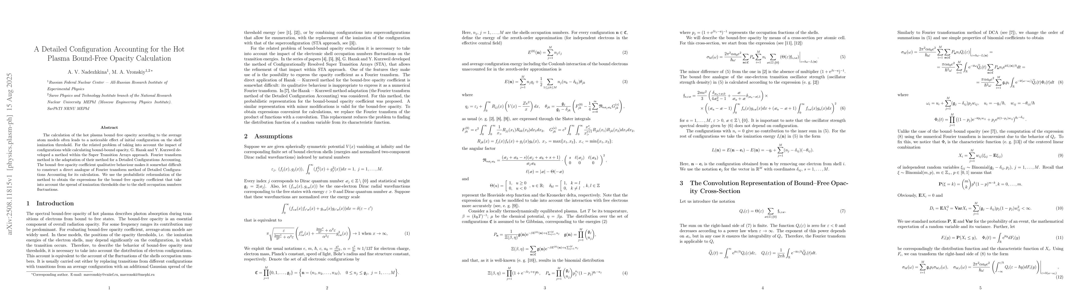 The calculation of the hot plasma bound-free opacity according to the average atom models often leads to a noticeable effect of initial configuration on the shell ionization threshold. For the related problem of taking into account the impact of configurations while calculating bound-bound opacity, G. Hazak and Y. Kurzweil developed a method within the Super Transition Arrays approach. Fourier transform method is the adaptation of their method for a Detailed Configurations Accounting. The bound--free opacity coefficient qualitative behavior makes it somewhat difficult to construct a direct analogue of Fourier transform method of Detailed Configurations Accounting for its calculation. We use the probabilistic reformulation of the method to obtain the expressions for the bound--free opacity coefficient that take into account the spread of ionization thresholds due to the shell occupation numbers fluctuations.