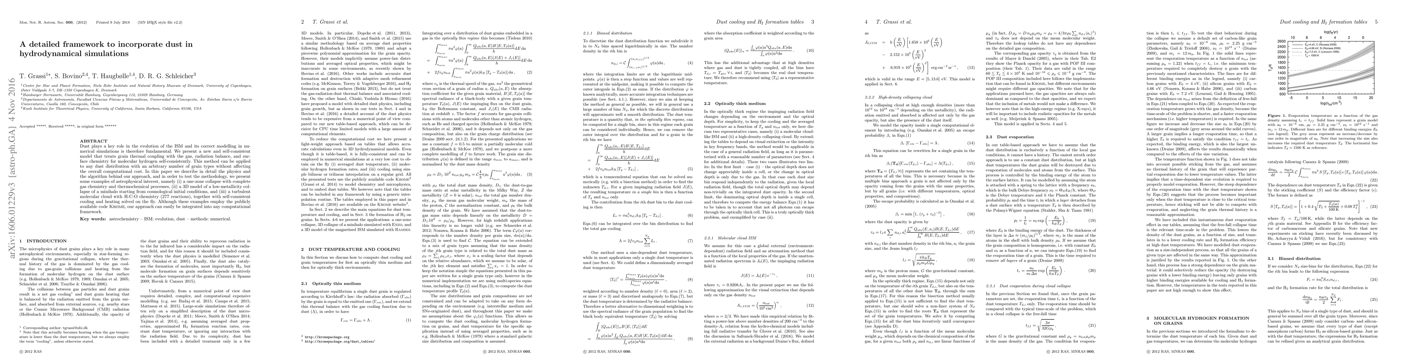 This paper introduces a self-consistent model for incorporating dust in hydrodynamical simulations, focusing on grain thermal coupling, radiation balance, and surface chemistry for molecular hydrogen. It demonstrates the methodology through examples including a one-zone collapse, a low-metallicity minihalo collapse, and a turbulent molecular cloud, all showing the model's applicability and efficiency.