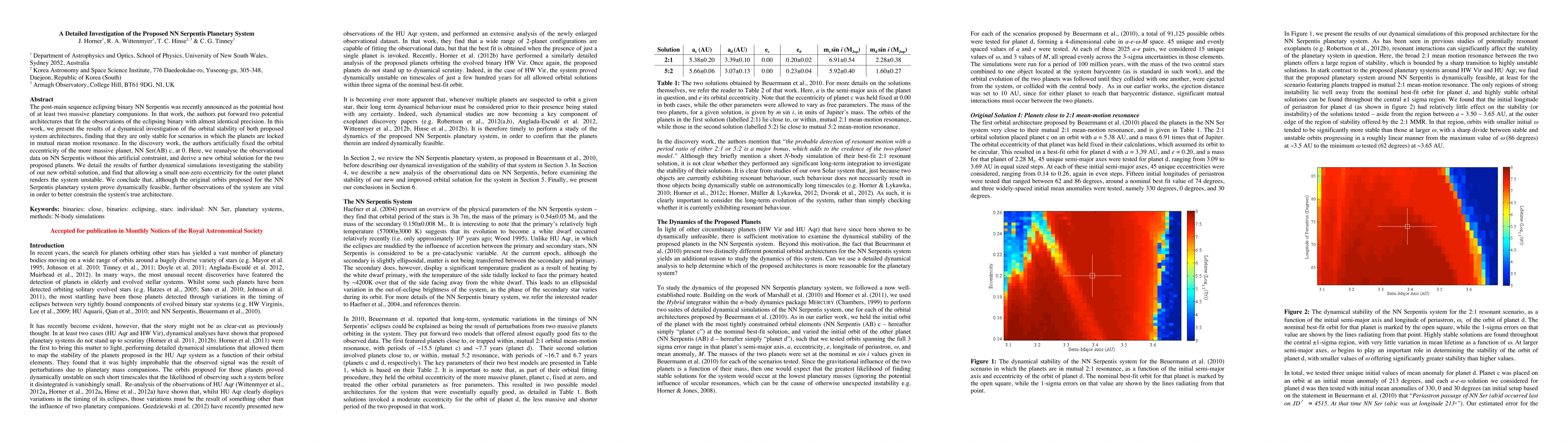 The post-main sequence eclipsing binary NN Serpentis was recently announced as the potential host of at least two massive planetary companions. In that work, the authors put forward two potential architectures that fit the observations of the eclipsing binary with almost identical precision. In this work, we present the results of a dynamical investigation of the orbital stability of both proposed system architectures, finding that they are only stable for scenarios in which the planets are locked in mutual mean motion resonance. In the discovery work, the authors artificially fixed the orbital eccentricity of the more massive planet, NN Ser(AB) c, at 0. Here, we reanalyse the observational data on NN Serpentis without this artificial constraint, and derive a new orbital solution for the two proposed planets. We detail the results of further dynamical simulations investigating the stability of our new orbital solution, and find that allowing a small non-zero eccentricity for the outer planet renders the system unstable. We conclude that, although the original orbits proposed for the NN Serpentis planetary system prove dynamically feasible, further observations of the system are vital in order to better constrain the system's true architecture.