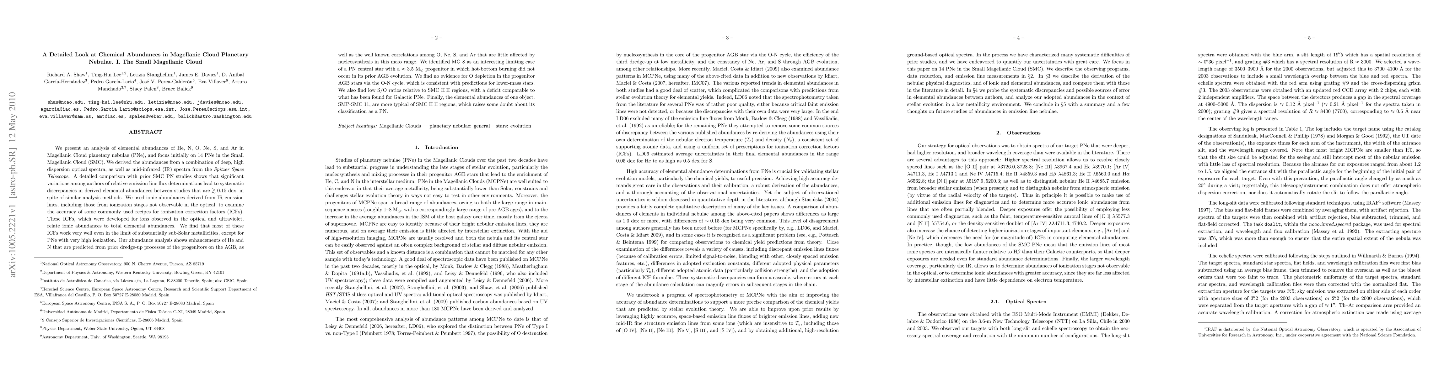 This paper analyzes elemental abundances in 14 planetary nebulae in the Small Magellanic Cloud, revealing significant discrepancies in abundance determinations due to variations in emission line flux measurements. The study finds that most ionization correction factors work well for sub-Solar metallicities, except for high-ionization nebulae, and identifies MG_8 as a unique case where hot-bottom burning did not occur.
