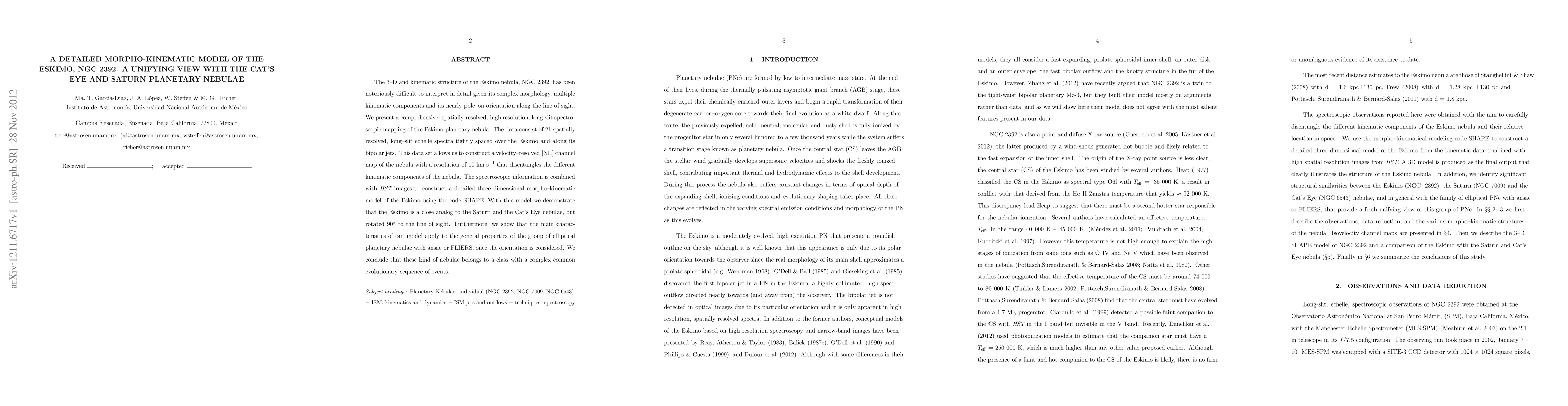 This paper presents a detailed morpho-kinematic model of the Eskimo nebula, NGC 2392, using high-resolution spectroscopy and HST images to reveal its 3-D structure and disentangle its kinematic components. The study finds that the Eskimo is analogous to the Saturn and Cat's Eye nebulae, suggesting a common evolutionary sequence for elliptical planetary nebulae with ansae or FLIERS.