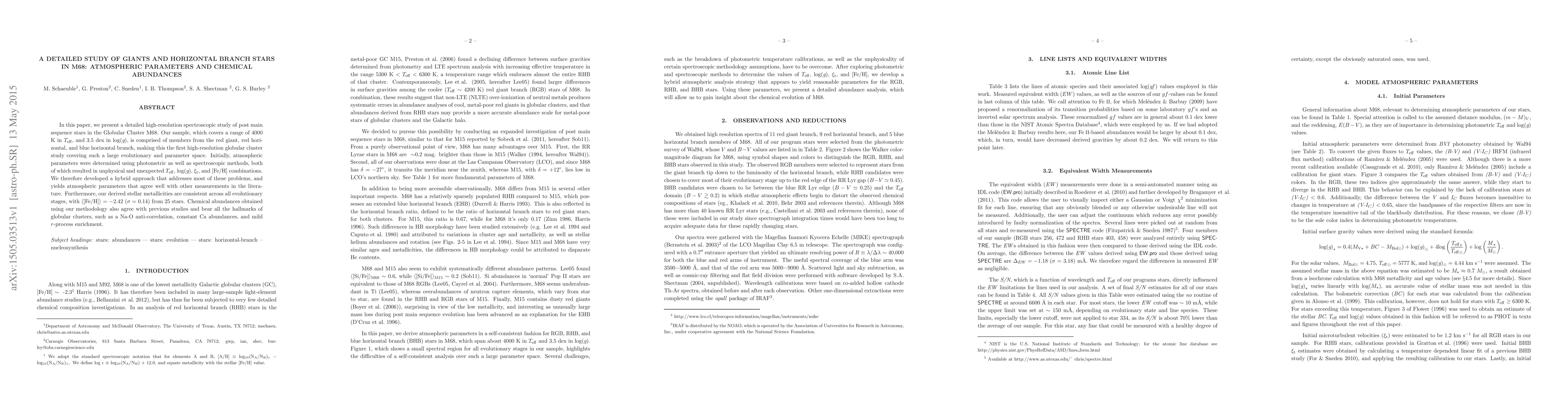 This paper conducts a high-resolution spectroscopic study of post main sequence stars in the globular cluster M68, covering a broad range of evolutionary stages. The study develops a hybrid approach to determine atmospheric parameters, yielding consistent metallicities and chemical abundances consistent with previous globular cluster findings.