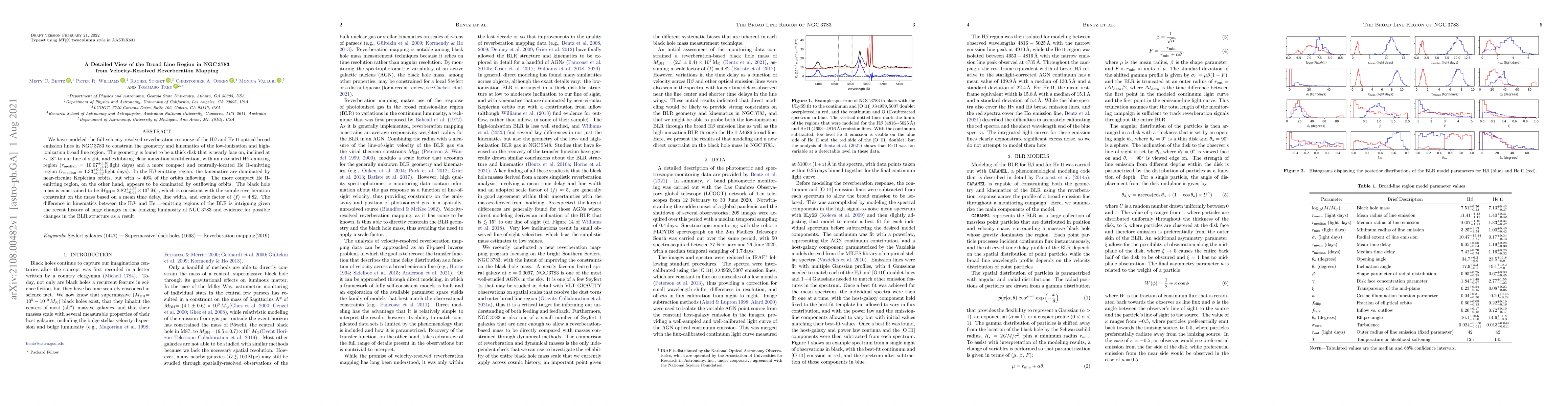 Researchers used velocity-resolved reverberation mapping to study NGC 3783's broad line region, finding a thick disk geometry with distinct kinematics in H$eta$ and He II lines, and constraining the black hole mass to $2.82 imes10^7$ $M_{oldsymbol{ullet}}$.