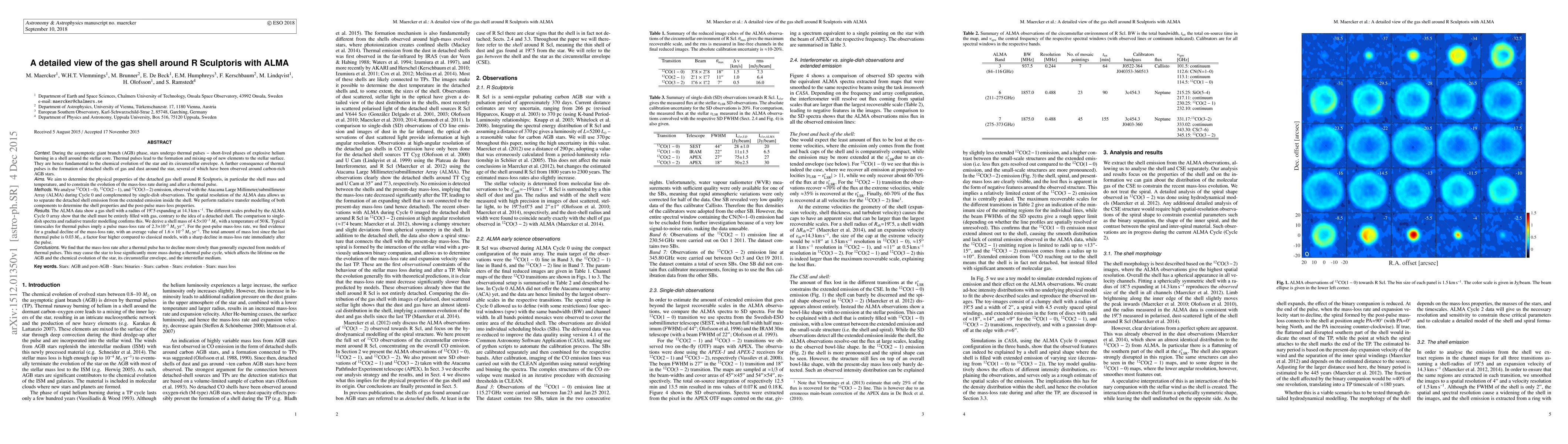 The ALMA observations of R Sculptoris reveal a gas shell with a mass of 4.5e-3 Msun and a temperature of 50K, challenging the notion of a partially empty detached shell. The mass-loss rate post-pulse declines gradually, suggesting a higher total mass loss than classical models predict.