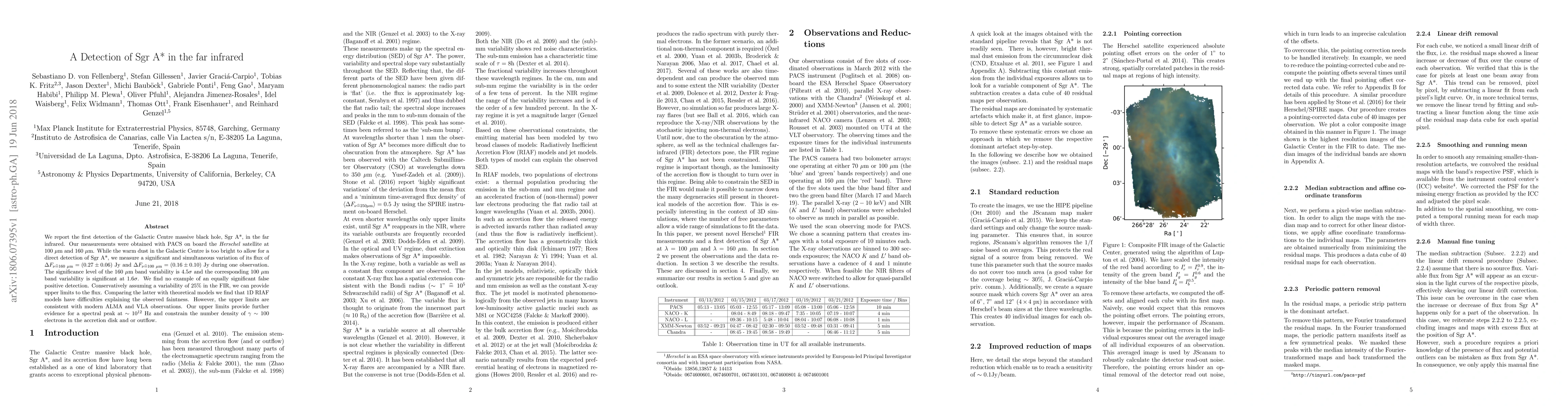 This paper reports the first detection of the Galactic Centre's massive black hole, Sgr A*, in the far infrared using PACS on the Herschel satellite. The study observes significant flux variations at 100 and 160 µm, indicating variability that challenges 1D RIAF models but aligns with modern ALMA and VLA observations.
