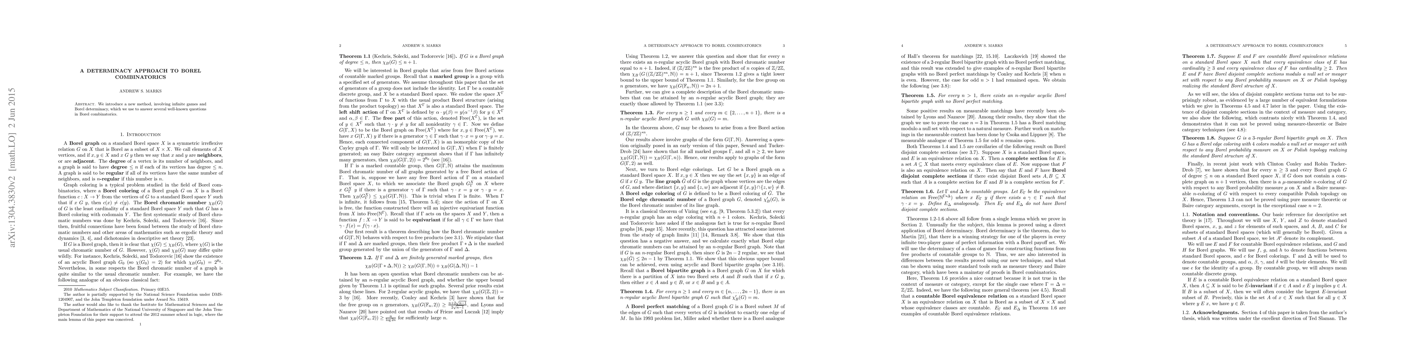 Summary: This paper presents a novel method using infinite games and Borel determinacy to address longstanding questions in Borel combinatorics, offering new insights into the field.