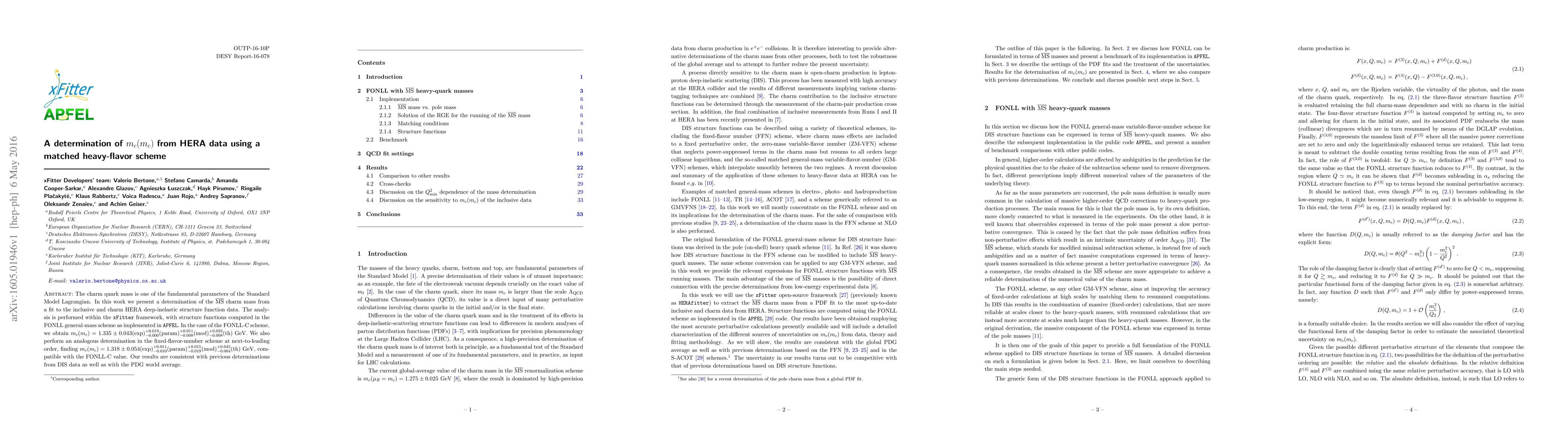 The charm quark mass is one of the fundamental parameters of the Standard Model Lagrangian. In this work we present a determination of the MSbar charm mass from a fit to the inclusive and charm HERA deep-inelastic structure function data. The analysis is performed within the xFitter framework, with structure functions computed in the FONLL general-mass scheme as implemented in APFEL. In the case of the FONLL-C scheme, we obtain mc(mc) = 1.335 +- 0.043(exp) +0.019 -0.000(param) +0.011 -0.008(mod) +0.033 -0.008(th) GeV. We also perform an analogous determination in the fixed-flavor-number scheme at next-to-leading order, finding mc(mc) = 1.318 +- 0.054(exp) +0.011 -0.010(param) +0.015 -0.019(mod) +0.045 -0.004(th) GeV, compatible with the FONLL-C value. Our results are consistent with previous determinations from DIS data as well as with the PDG world average.