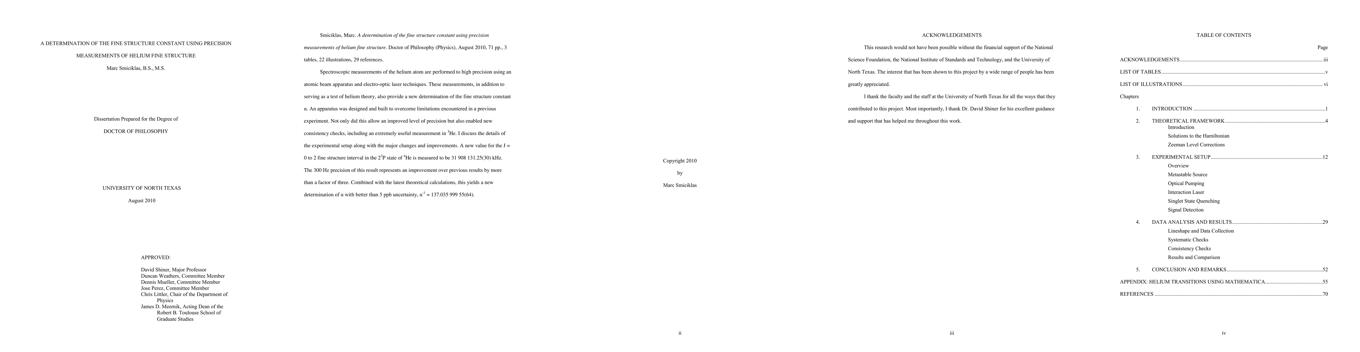 Spectroscopic measurements of the helium atom are performed to high precision using an atomic beam apparatus and electro-optic laser techniques. These measurements, in addition to serving as a test of helium theory, also provide a new determination of the fine structure constant {\alpha}. An apparatus was designed and built to overcome limitations encountered in a previous experiment. Not only did this allow an improved level of precision but also enabled new consistency checks, including an extremely useful measurement in 3He. I discuss the details of the experimental setup along with the major changes and improvements. A new value for the J = 0 to 2 fine structure interval in the 23P state of 4He is measured to be 31 908 131.25(30) kHz. The 300 Hz precision of this result represents an improvement over previous results by more than a factor of three. Combined with the latest theoretical calculations, this yields a new determination of {\alpha} with better than 5 ppb uncertainty, {\alpha}-1 = 137.035 999 55(64).