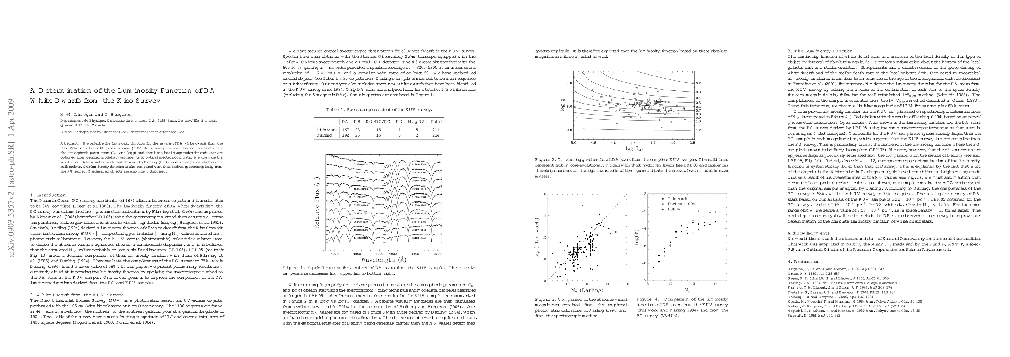 This paper recalculates the luminosity function for DA white dwarfs from the Kiso Survey using detailed spectroscopic methods, comparing it to previous results from Darling (1994) and the PG survey, and briefly addresses misclassified objects.