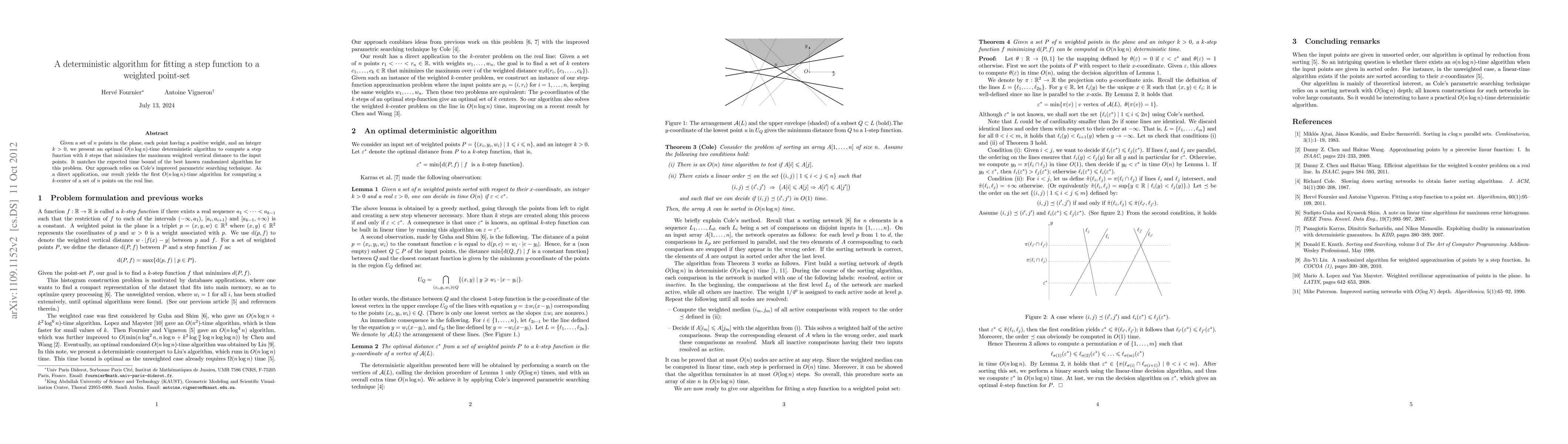 Given a set of n points in the plane, each point having a positive weight, and an integer k>0, we present an optimal O(n \log n)-time deterministic algorithm to compute a step function with k steps that minimizes the maximum weighted vertical distance to the input points. It matches the expected time bound of the best known randomized algorithm for this problem. Our approach relies on Cole's improved parametric searching technique.