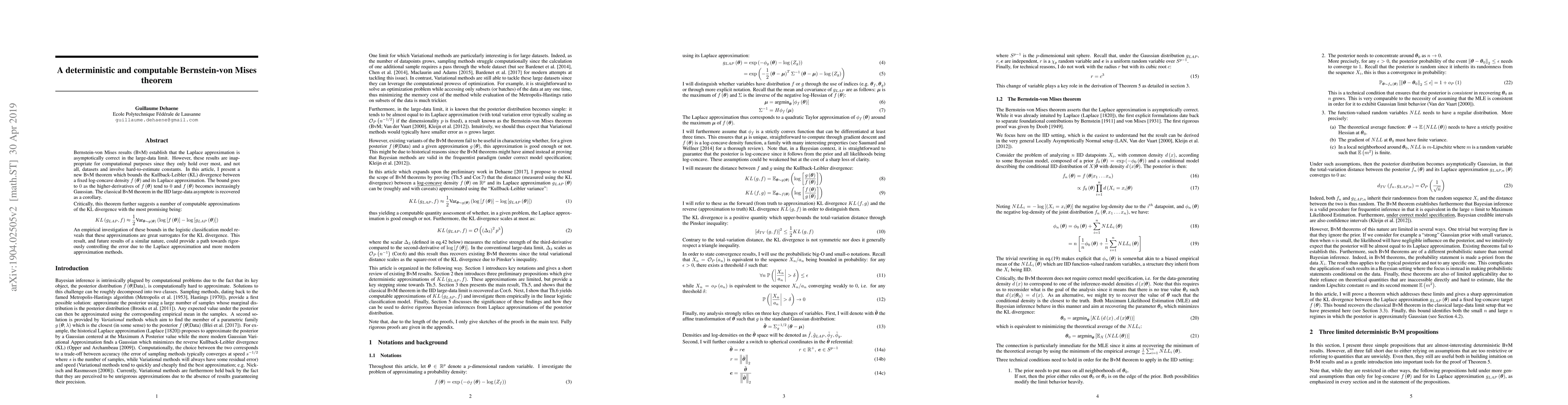 This paper presents a new deterministic and computable Bernstein-von Mises theorem that bounds the Kullback-Leibler divergence between a log-concave density and its Laplace approximation, providing a rigorous control over the error in approximation methods. The proposed computable approximation shows promising empirical results in logistic classification models.