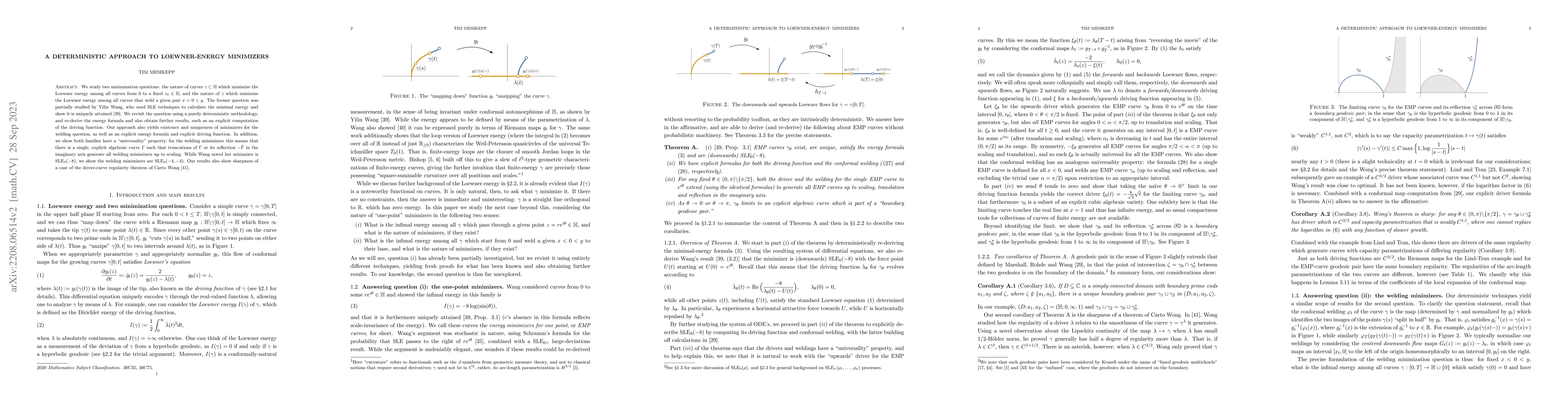 This paper presents a deterministic approach to finding Loewner-energy minimizers, deriving explicit formulas and driving functions for both curves from 0 to a fixed point and curves welding a given pair of points. It establishes existence and uniqueness of minimizers and reveals a universality property for welding minimizers.