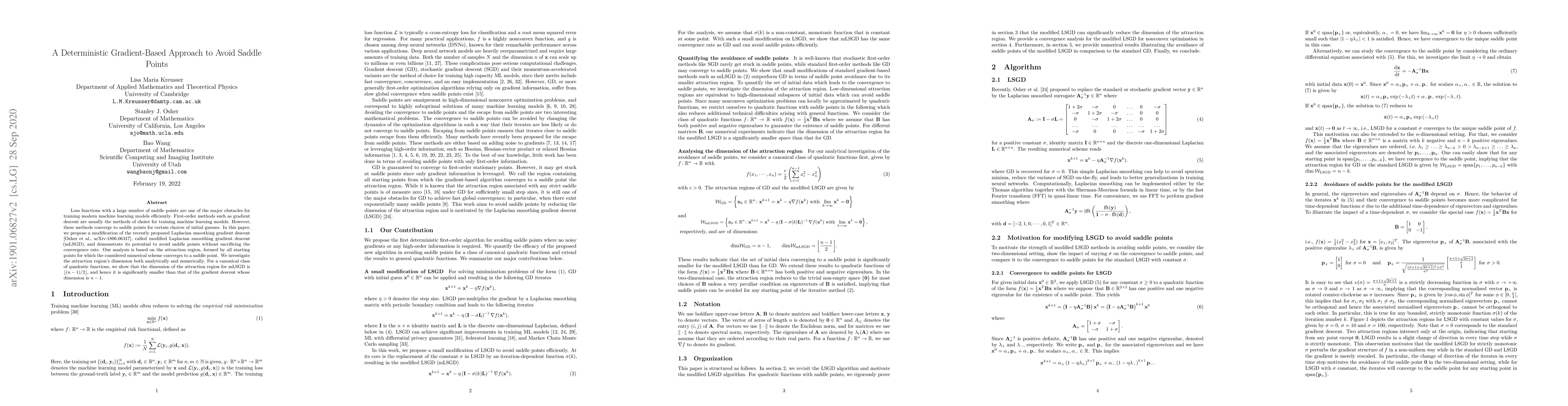 Loss functions with a large number of saddle points are one of the major obstacles for training modern machine learning models efficiently. First-order methods such as gradient descent are usually the methods of choice for training machine learning models. However, these methods converge to saddle points for certain choices of initial guesses. In this paper, we propose a modification of the recently proposed Laplacian smoothing gradient descent [Osher et al., arXiv:1806.06317], called modified Laplacian smoothing gradient descent (mLSGD), and demonstrate its potential to avoid saddle points without sacrificing the convergence rate. Our analysis is based on the attraction region, formed by all starting points for which the considered numerical scheme converges to a saddle point. We investigate the attraction region's dimension both analytically and numerically. For a canonical class of quadratic functions, we show that the dimension of the attraction region for mLSGD is floor((n-1)/2), and hence it is significantly smaller than that of the gradient descent whose dimension is n-1.