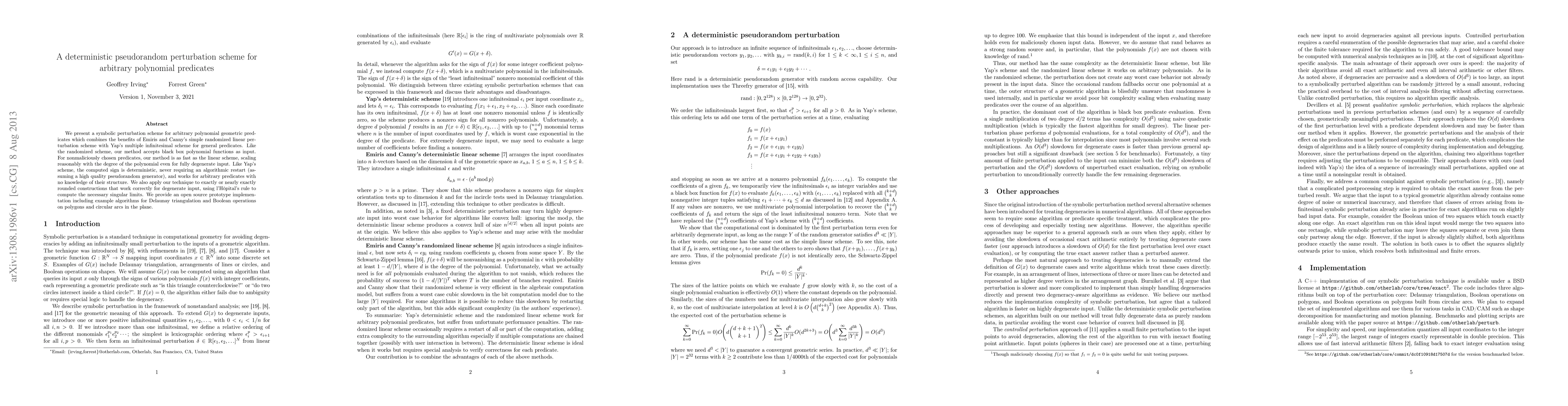A new method combines benefits of existing schemes to provide a fast and deterministic way to evaluate arbitrary polynomial geometric predicates, allowing for efficient computation on degenerate inputs.