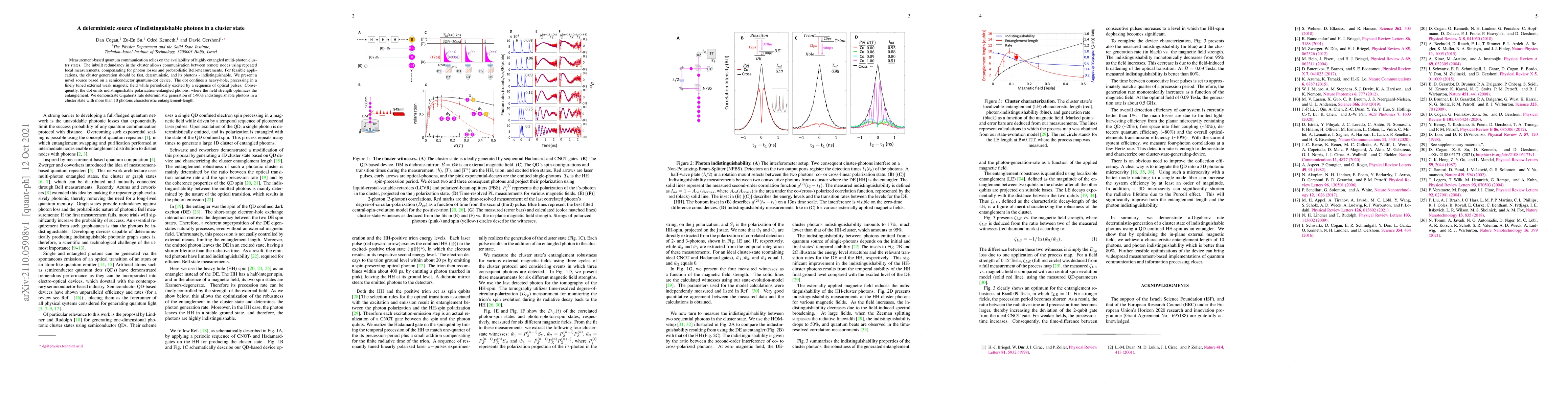 Measurement-based quantum communication relies on the availability of highly entangled multi-photon cluster states. The inbuilt redundancy in the cluster allows communication between remote nodes using repeated local measurements, compensating for photon losses and probabilistic Bell-measurements. For feasible applications, the cluster generation should be fast, deterministic, and its photons - indistinguishable. We present a novel source based on a semiconductor quantum-dot device. The dot confines a heavy-hole, precessing in a finely tuned external weak magnetic field while periodically excited by a sequence of optical pulses. Consequently, the dot emits indistinguishable polarization-entangled photons, where the field strength optimizes the entanglement. We demonstrate Gigahertz rate deterministic generation of >90% indistinguishable photons in a cluster state with more than 10 photons characteristic entanglement-length.
