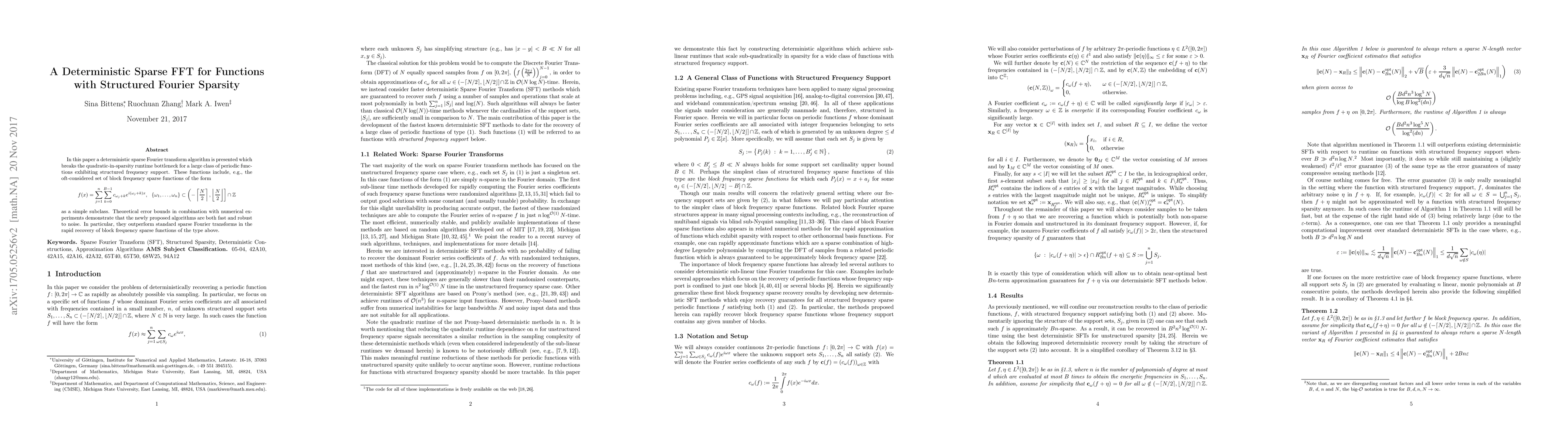 This paper introduces a deterministic sparse Fourier transform algorithm that efficiently handles periodic functions with structured frequency support, breaking the quadratic runtime bottleneck. It outperforms standard methods in recovering block frequency sparse functions, as shown by theoretical bounds and numerical experiments.