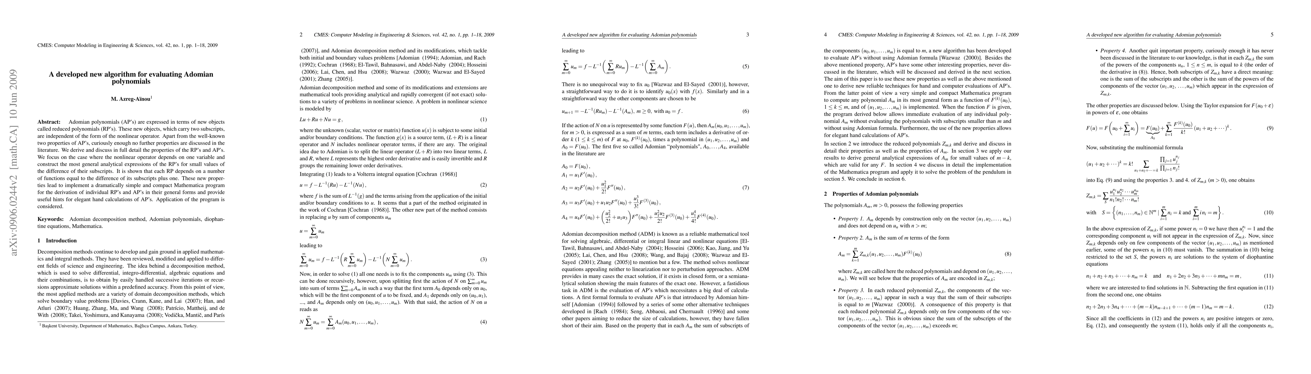 This paper develops a new algorithm for evaluating Adomian polynomials (AP's) by introducing reduced polynomials (RP's), which are independent of the nonlinear operator's form. It thoroughly explores the properties of RP's and AP's, leading to a simple Mathematica program for their derivation and useful insights for manual calculations.