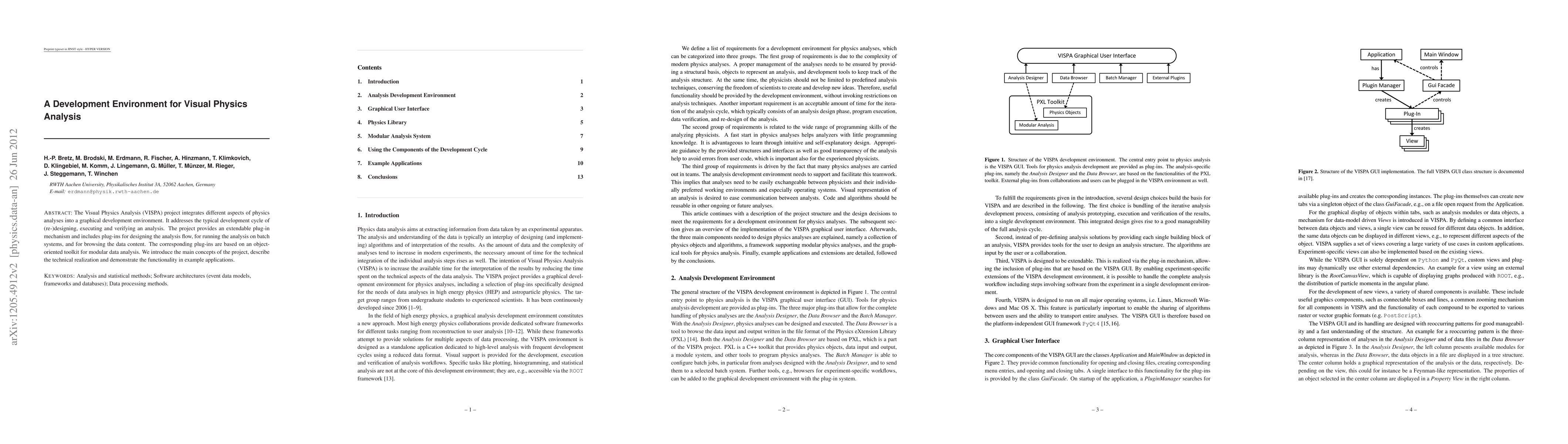 The VISPA project creates a graphical development environment for visual physics analysis, integrating tools for designing, executing, and verifying analyses. It features an extendable plug-in mechanism and showcases its functionality through example applications.