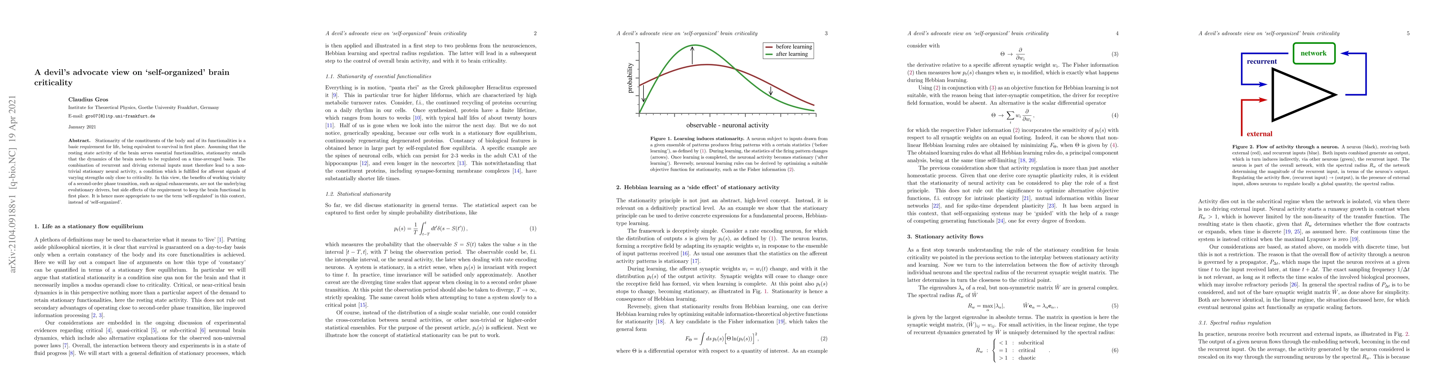 Stationarity of the constituents of the body and of its functionalities is a basic requirement for life, being equivalent to survival in first place. Assuming that the resting state activity of the brain serves essential functionalities, stationarity entails that the dynamics of the brain needs to be regulated on a time-averaged basis. The combination of recurrent and driving external inputs must therefore lead to a non-trivial stationary neural activity, a condition which is fulfilled for afferent signals of varying strengths only close to criticality. In this view, the benefits of working vicinity of a second-order phase transition, such as signal enhancements, are not the underlying evolutionary drivers, but side effects of the requirement to keep the brain functional in first place. It is hence more appropriate to use the term 'self-regulated' in this context, instead of 'self-organized'.