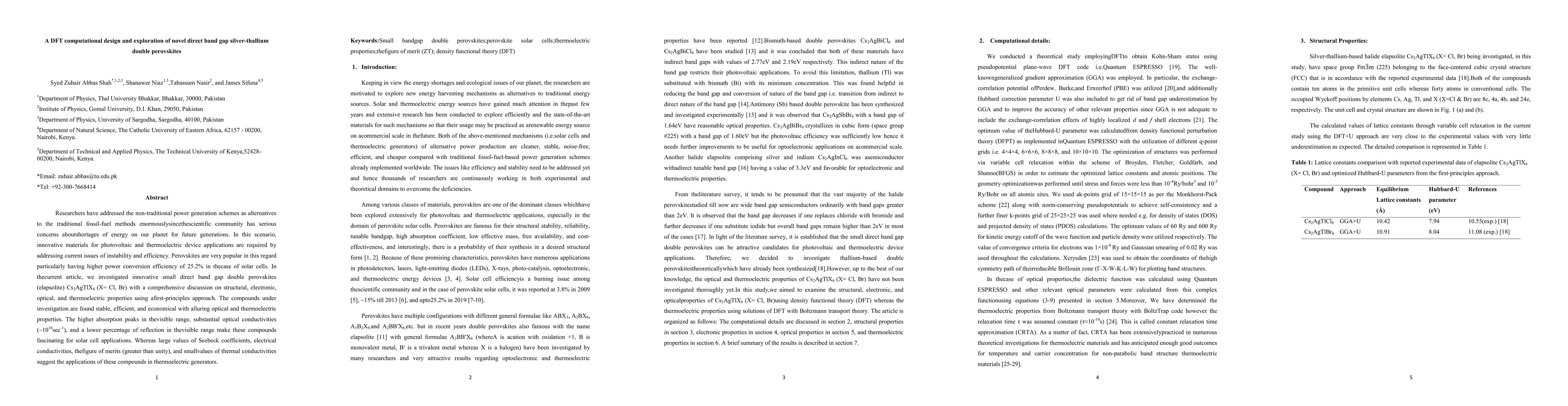 This paper explores novel silver-thallium double perovskites (Cs$_2$AgTlX$_6$, X=Cl, Br) using DFT computational methods, finding them stable, efficient, and economical with promising optical and thermoelectric properties, making them suitable for solar cell and thermoelectric generator applications.