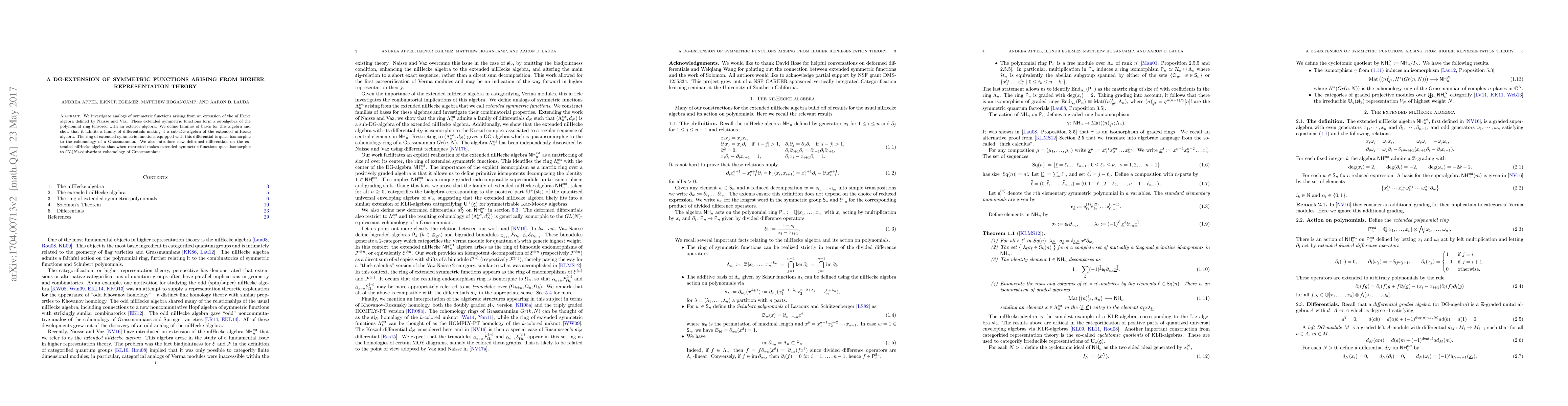 We investigate analogs of symmetric functions arising from an extension of the nilHecke algebra defined by Naisse and Vaz. These extended symmetric functions form a subalgebra of the polynomial ring tensored with an exterior algebra. We define families of bases for this algebra and show that it admits a family of differentials making it a sub-DG-algebra of the extended nilHecke algebra. The ring of extended symmetric functions equipped with this differential is quasi-isomorphic to the cohomology of a Grassmannian. We also introduce new deformed differentials on the extended nilHecke algebra that when restricted makes extended symmetric functions quasi-isomorphic to $GL(N)$-equivariant cohomology of Grassmannians.