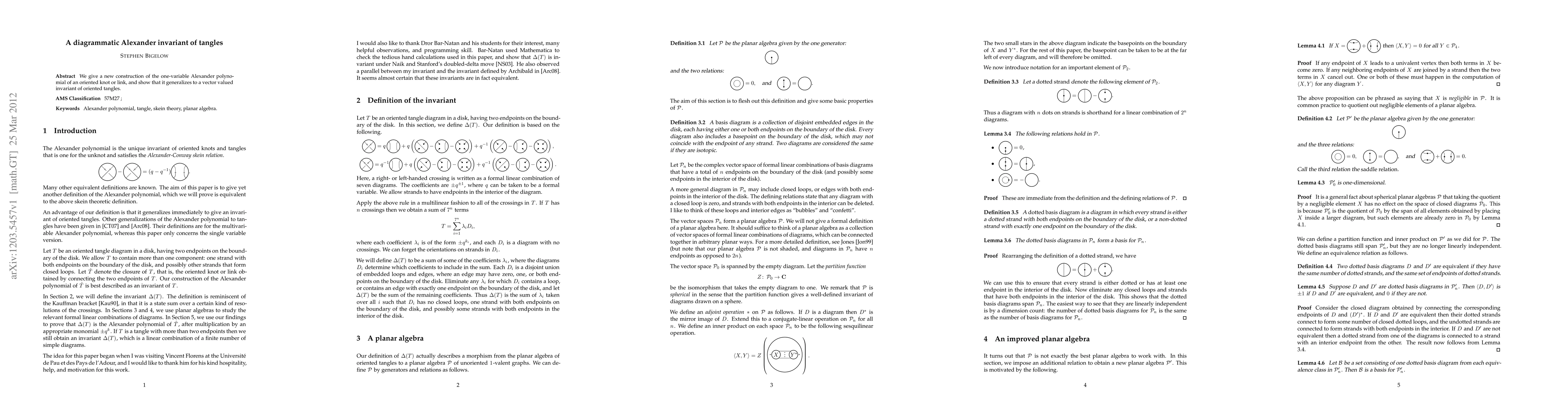 Summary: This paper introduces a novel construction of the Alexander polynomial for knots and links, extending it to a vector-valued invariant for tangles, providing a new diagrammatic approach to these topological objects.