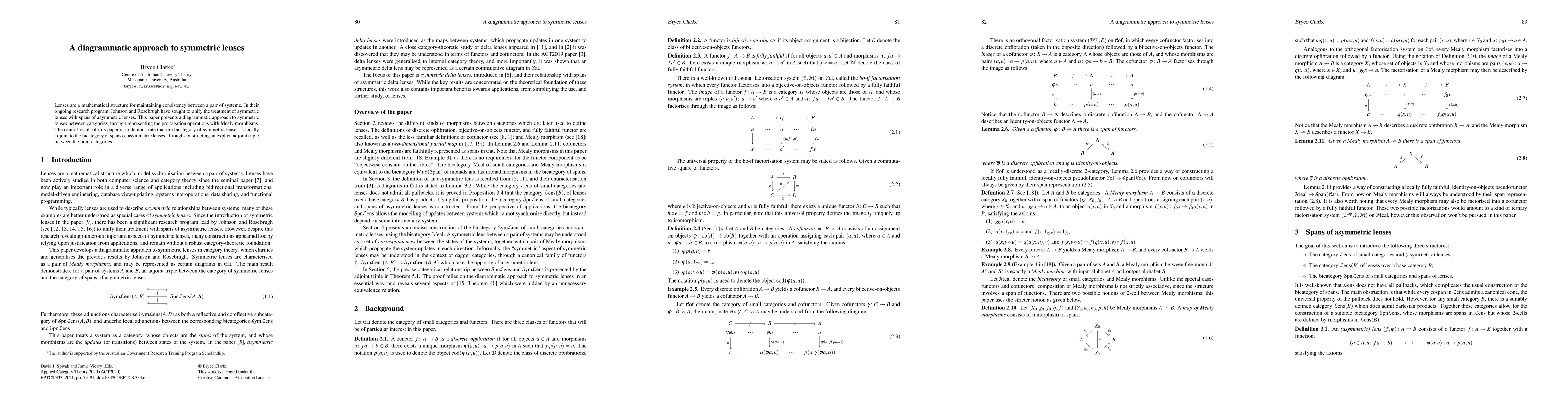 Lenses are a mathematical structure for maintaining consistency between a pair of systems. In their ongoing research program, Johnson and Rosebrugh have sought to unify the treatment of symmetric lenses with spans of asymmetric lenses. This paper presents a diagrammatic approach to symmetric lenses between categories, through representing the propagation operations with Mealy morphisms. The central result of this paper is to demonstrate that the bicategory of symmetric lenses is locally adjoint to the bicategory of spans of asymmetric lenses, through constructing an explicit adjoint triple between the hom-categories.