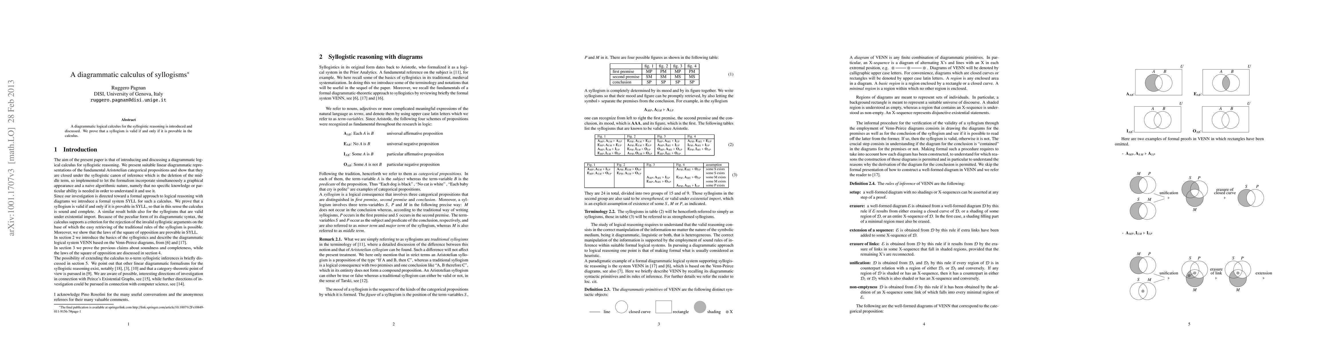 This paper introduces a diagrammatic logical calculus for syllogistic reasoning, proving that a syllogism's validity is equivalent to its provability within the proposed calculus.