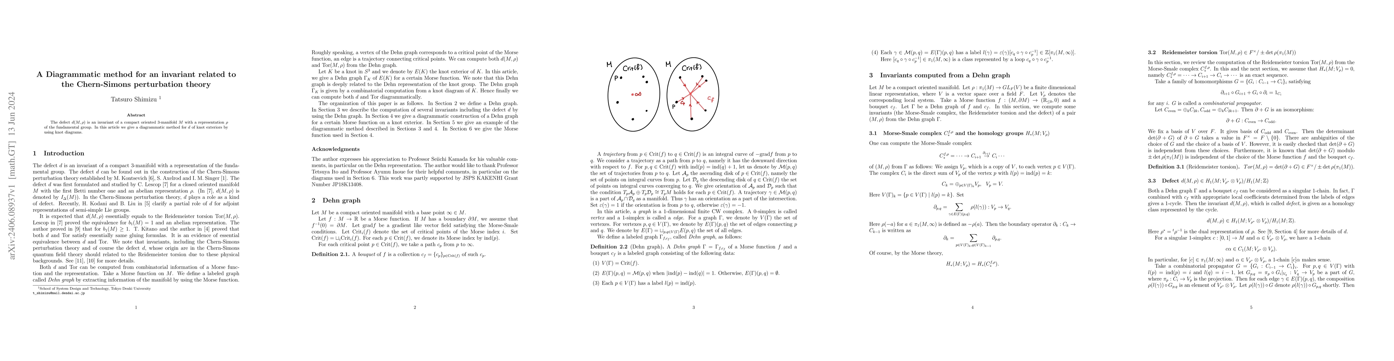 Summary: This paper presents a diagrammatic method to compute the invariant $d(M,\rho)$ for knot exteriors, using knot diagrams to represent the compact oriented 3-manifold $M$ with a representation $\rho$. The approach provides a visual tool for understanding this invariant in the context of Chern-Simons perturbation theory.