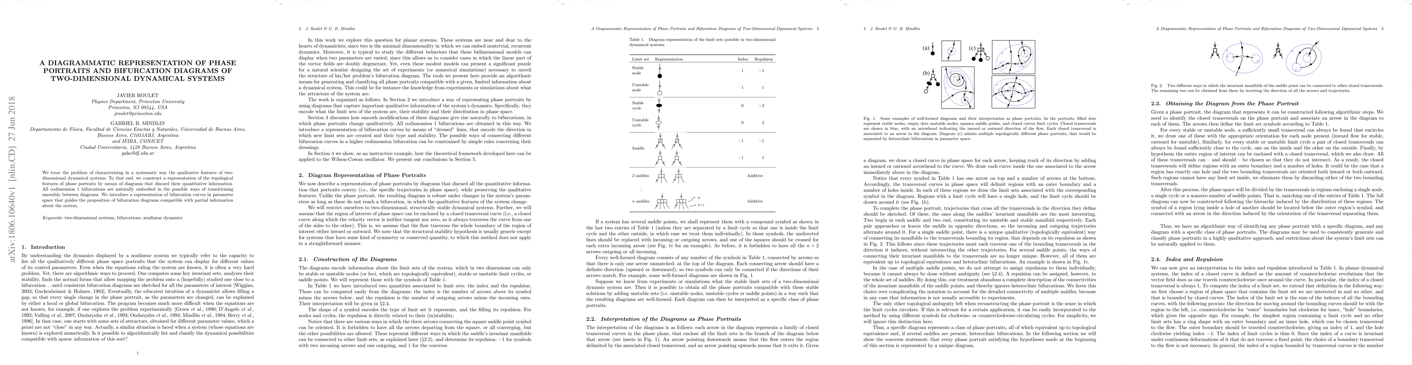 This paper systematically characterizes the qualitative features of two-dimensional dynamical systems through diagrammatic representations that focus on topological features while discarding quantitative details. It also introduces bifurcation diagrams that reflect codimension 1 bifurcations and guide the construction of bifurcation curves in parameter space.