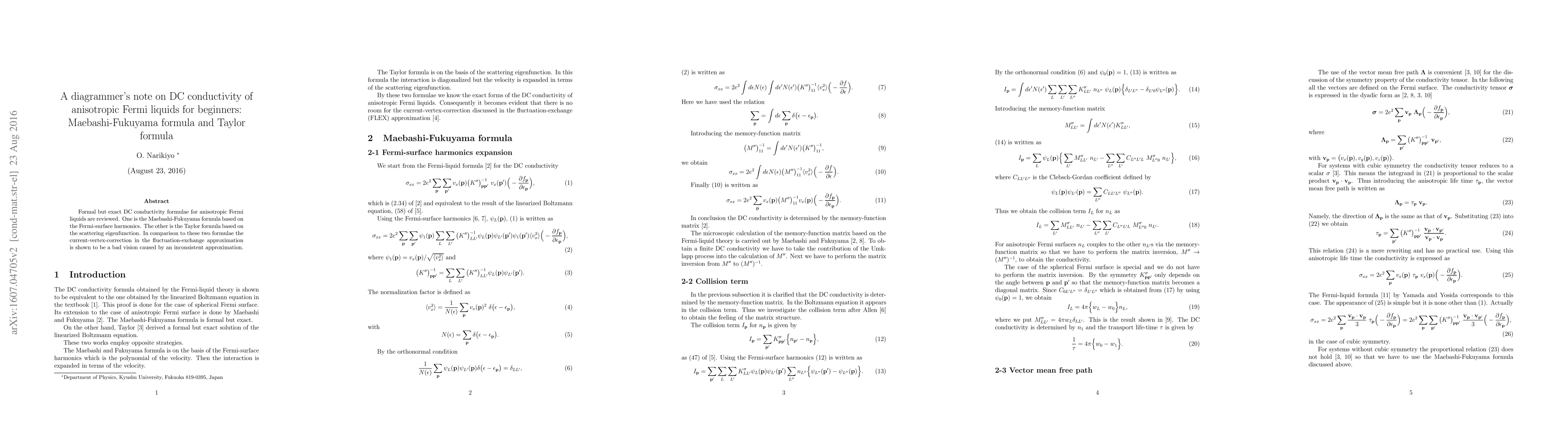Formal but exact DC conductivity formulae for anisotropic Fermi liquids are reviewed. One is the Maebashi-Fukuyama formula based on the Fermi-surface harmonics. The other is the Taylor formula based on the scattering eigenfunction. In comparison to these two formulae the current-vertex-correction in the fluctuation-exchange approximation is shown to be a bad vision caused by an inconsistent approximation.
