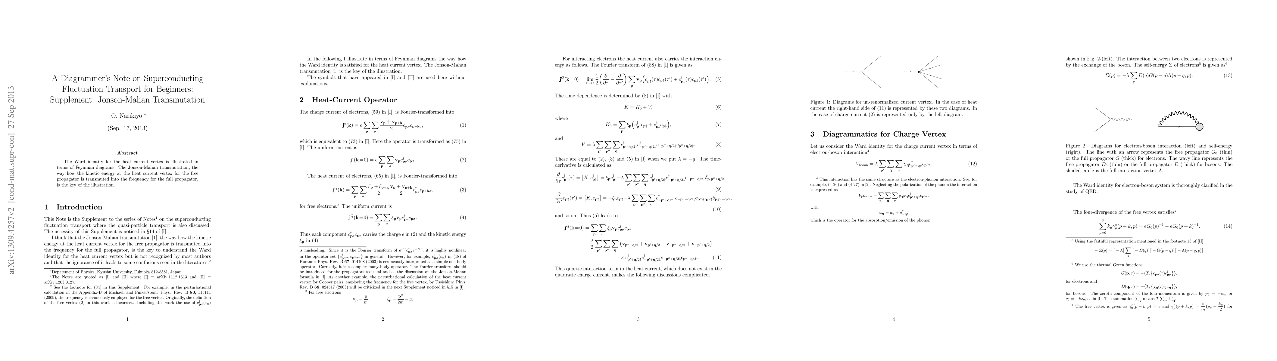 The Ward identity for the heat current vertex is illustrated in terms of Feynman diagrams. The Jonson-Mahan transmutation, the way how the kinetic energy at the heat current vertex for the free propagator is transmuted into the frequency for the full propagator, is the key of the illustration.