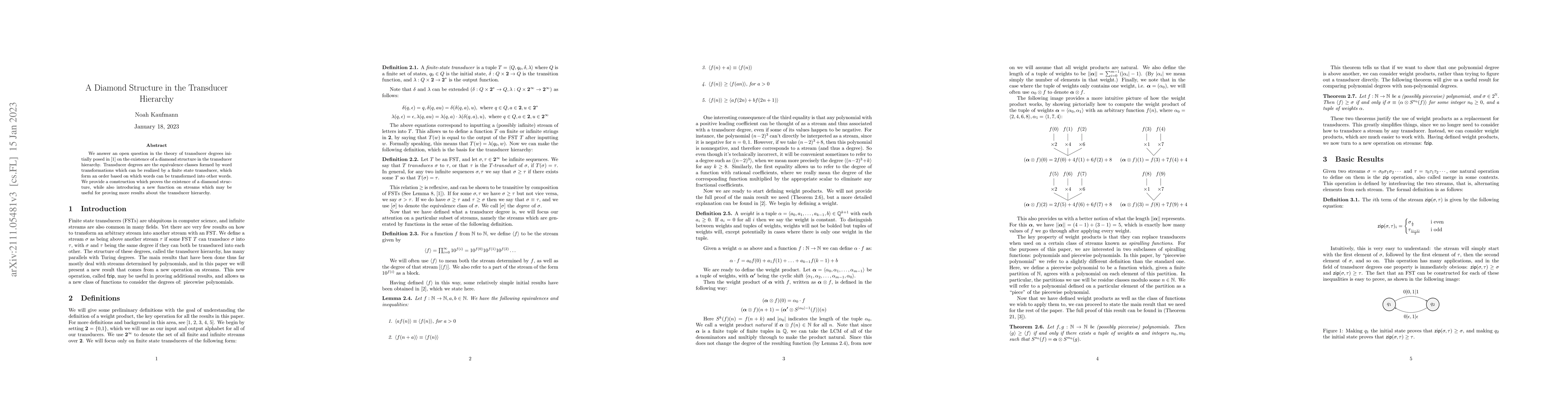 We answer an open question in the theory of transducer degrees initially posed in [1] on the existence of a diamond structure in the transducer hierarchy. Transducer degrees are the equivalence classes formed by word transformations which can be realized by a finite state transducer, which form an order based on which words can be transformed into other words. We provide a construction which proves the existence of a diamond structure, while also introducing a new function on streams which may be useful for proving more results about the transducer hierarchy.