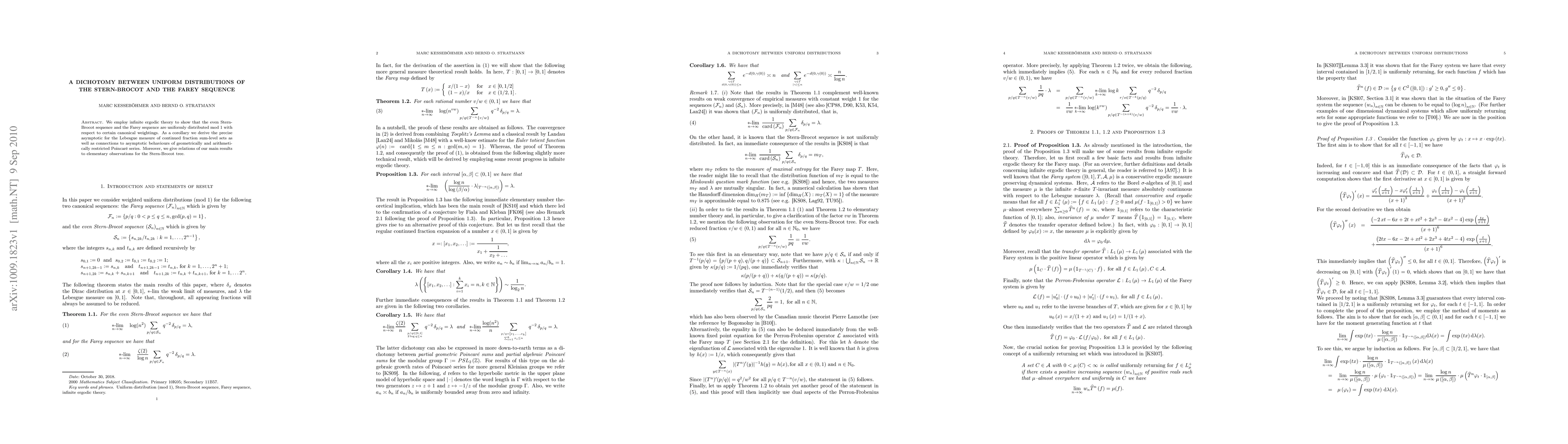 This paper uses infinite ergodic theory to demonstrate the uniform distribution mod 1 of the even Stern-Brocot and Farey sequences under specific weightings, deriving precise asymptotics for Lebesgue measure of continued fraction sum-level sets and linking these results to restricted Poincaré series.