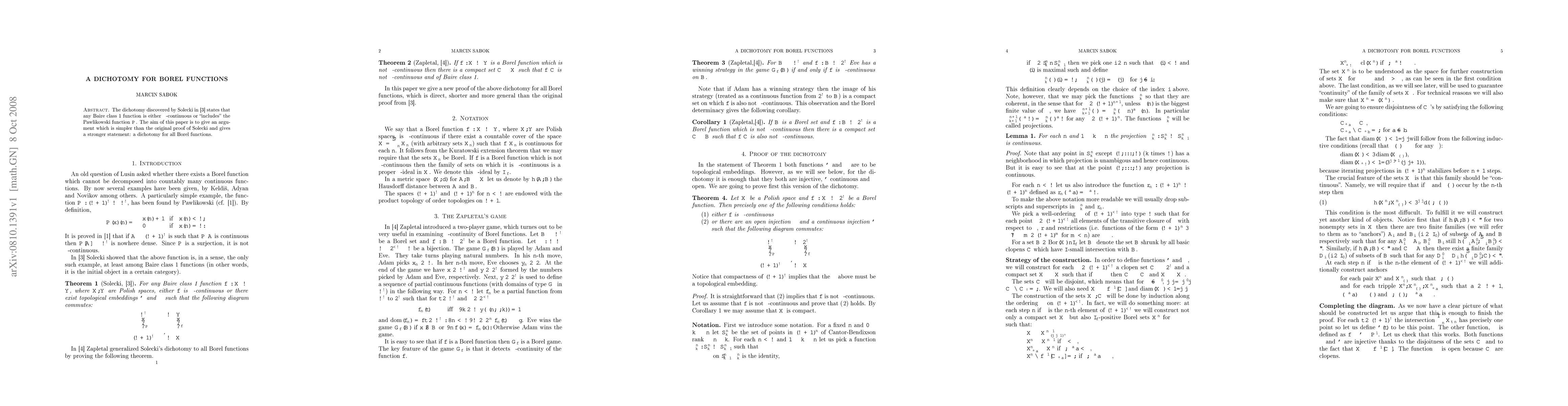 This paper simplifies Solecki's original proof of the dichotomy for Baire class 1 functions and extends the result to all Borel functions, showing they are either $\sigma$-continuous or include the Pawlikowski function $P$.