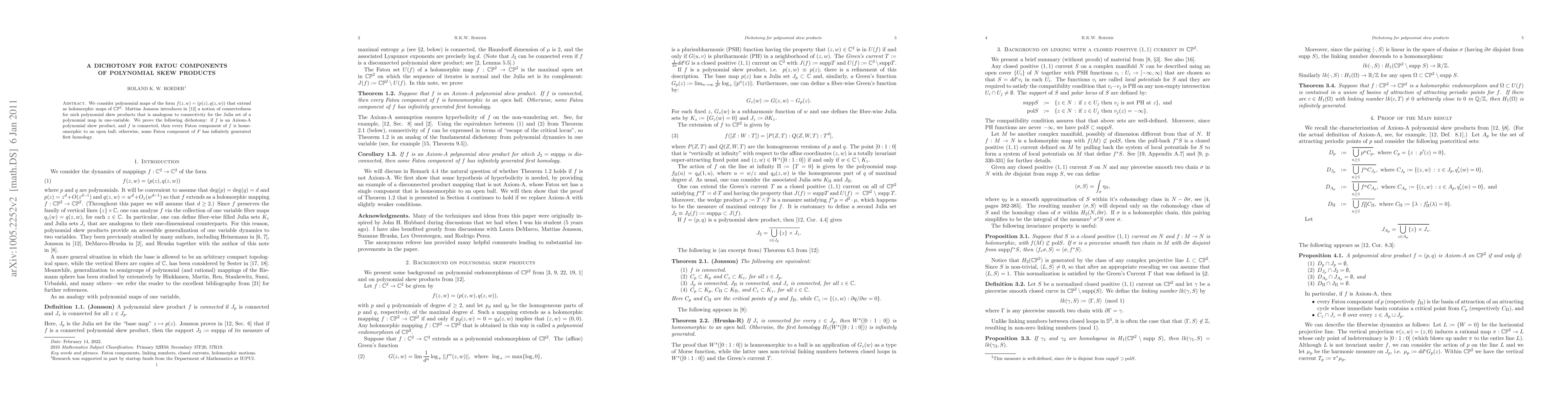 We consider polynomial maps of the form f(z,w) = (p(z),q(z,w)) that extend as holomorphic maps of CP^2. Mattias Jonsson introduces in (Math. Ann., 1999) a notion of connectedness for such polynomial skew products that is analogous to connectivity for the Julia set of a polynomial map in one-variable. We prove the following dichotomy: if f is an Axiom-A polynomial skew product, and f is connected, then every Fatou component of f is homeomorphic to an open ball; otherwise, some Fatou component of f has infinitely generated first homology.