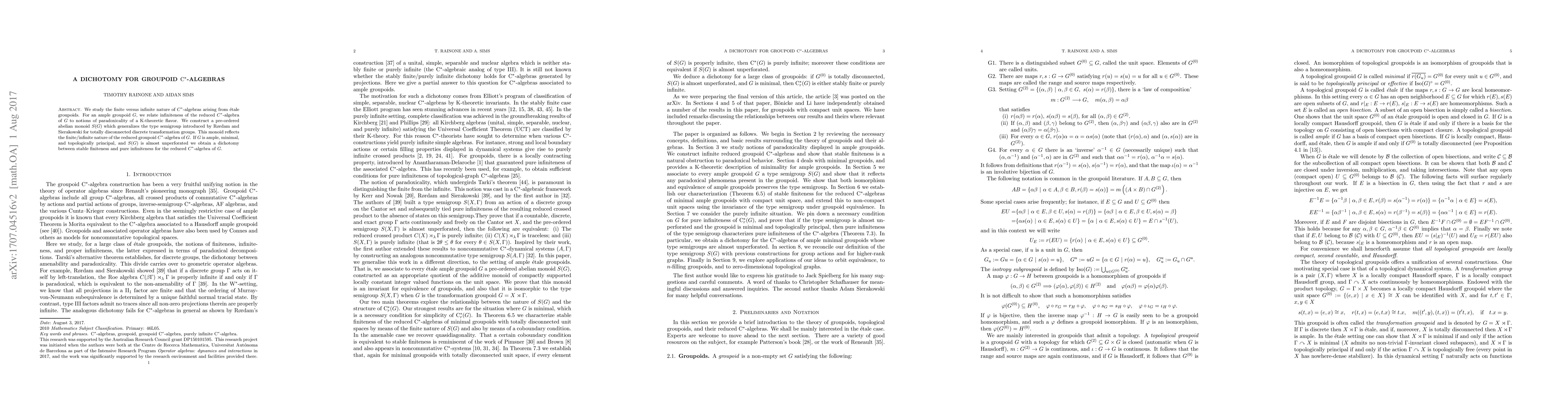 This research paper investigates the dichotomy between finite and infinite C*-algebras derived from étale groupoids, relating the infiniteness of the reduced C*-algebra to K-theoretic paradoxicality. It constructs a pre-ordered abelian monoid S(G) to reflect the nature of these algebras, establishing a dichotomy for ample, minimal, and topologically principal groupoids with almost unperforated S(G) between stable finiteness and pure infiniteness.
