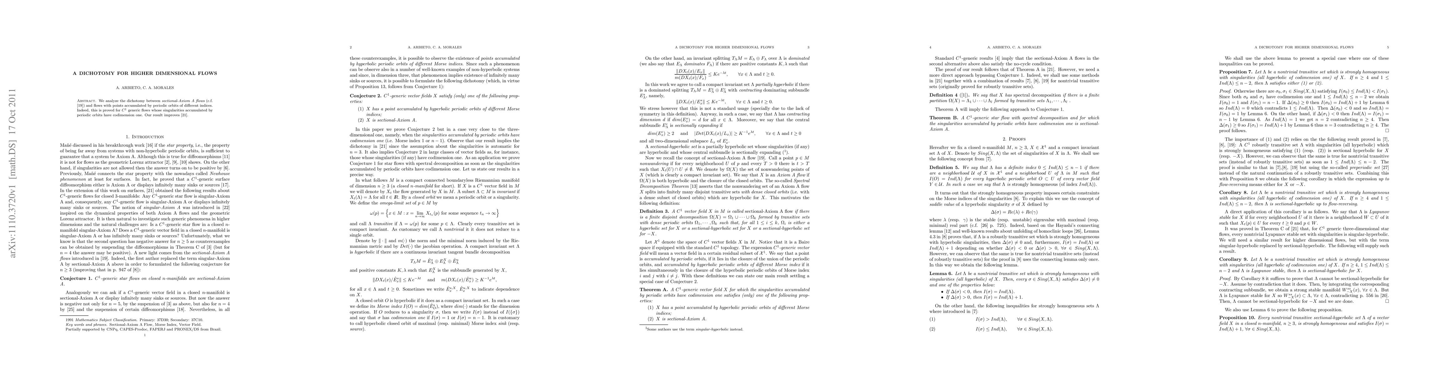 We analyze the dichotomy between {\em sectional-Axiom A flows} (c.f. \cite{memo}) and flows with points accumulated by periodic orbits of different indices. Indeed, this is proved for $C^1$ generic flows whose singularities accumulated by periodic orbits have codimension one. Our result improves \cite{mp1}.
