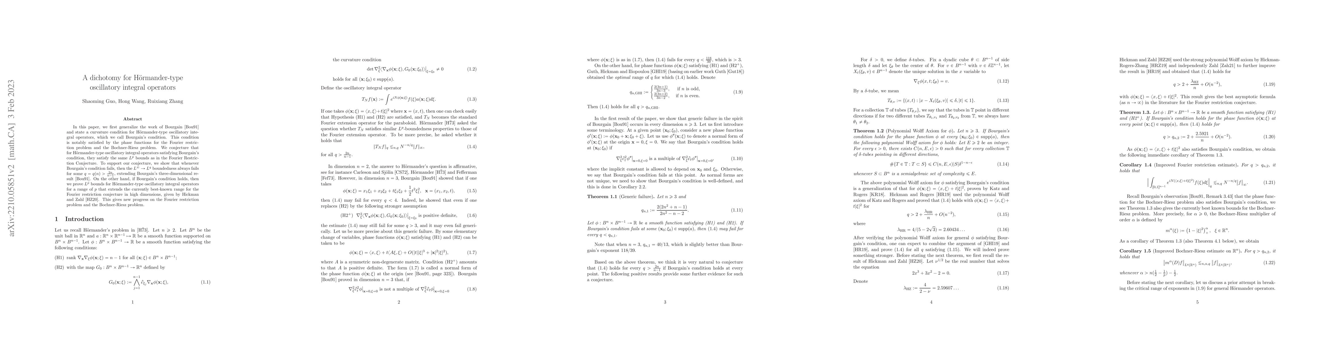 This paper generalizes Bourgain's work on H\"ormander-type oscillatory integral operators by introducing a curvature condition, termed Bourgain's condition, which is satisfied by phase functions in Fourier restriction and Bochner-Riesz problems. The authors conjecture that operators meeting this condition achieve $L^p$ bounds similar to those in the Fourier Restriction Conjecture.