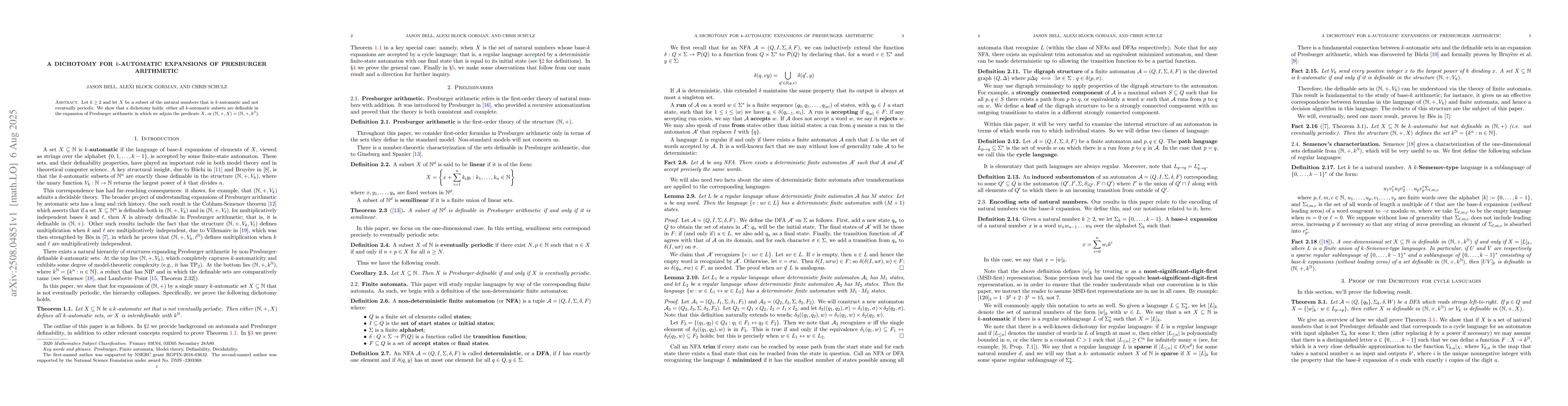 The paper introduces a novel dichotomy for k-automatic expansions of Presburger arithmetic, providing a clear classification criterion and constructive methods for defining Vk in certain cases.