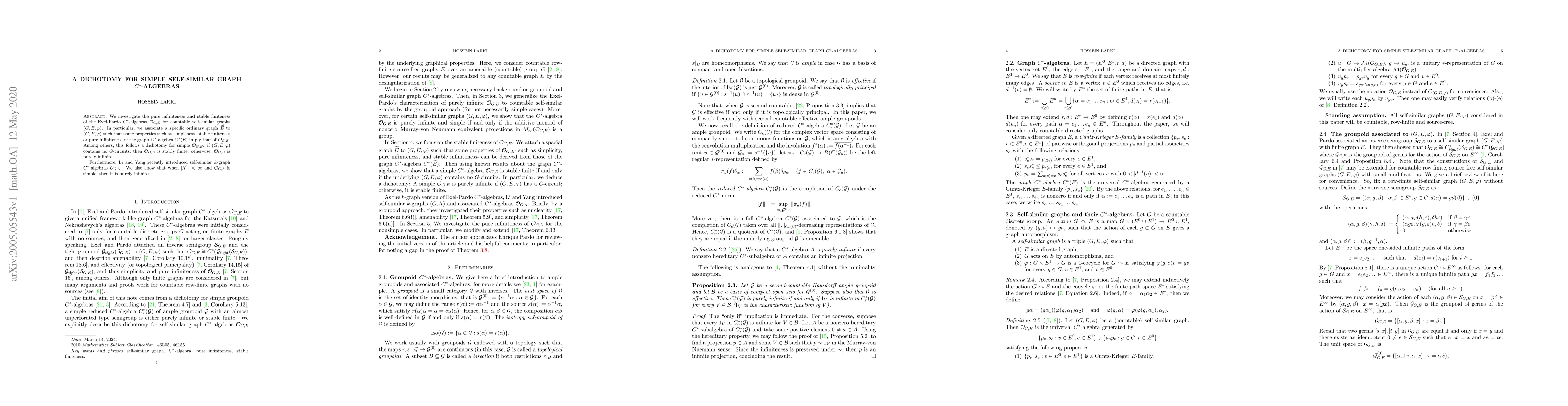Research on Exel-Pardo $C^*$-algebras for countable self-similar graphs shows a dichotomy between stable finiteness and pure infiniteness, depending on the presence of certain graph structures.