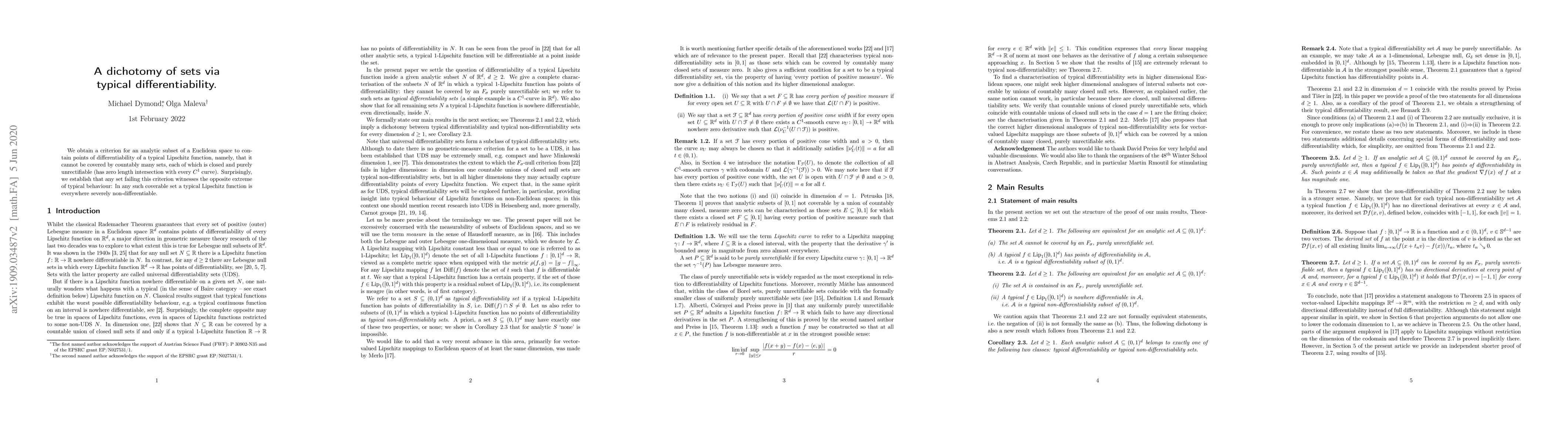 The paper establishes a criterion for an analytic subset to include points of differentiability of a typical Lipschitz function, showing that such subsets cannot be covered by countably many closed, purely unrectifiable sets. Conversely, sets meeting this criterion exhibit severe non-differentiability for typical Lipschitz functions.