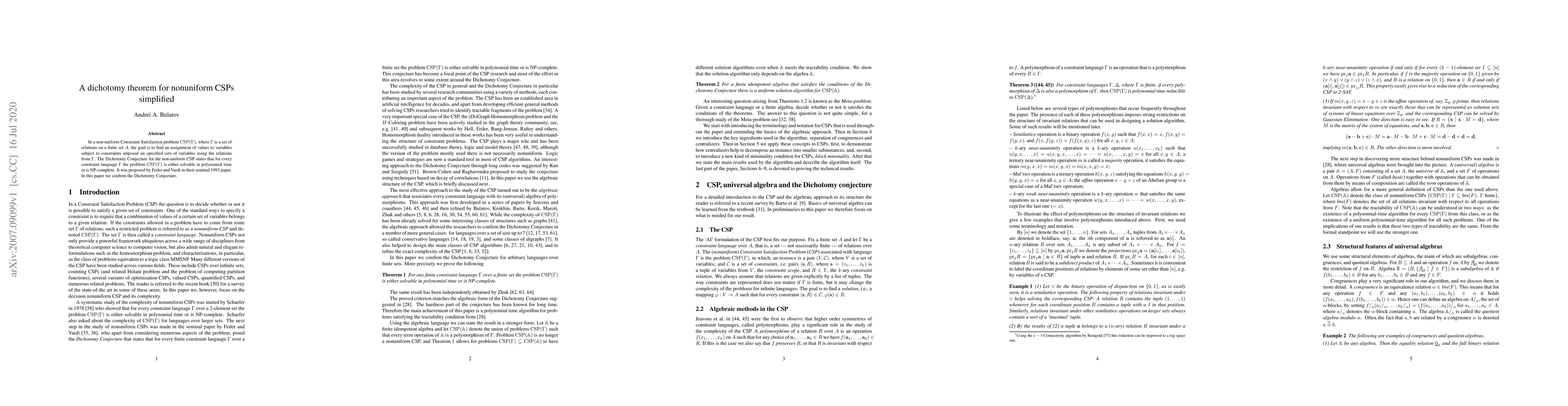 This paper confirms the Dichotomy Conjecture for non-uniform Constraint Satisfaction Problems (CSPs), asserting that CSPs with a given constraint language are either solvable in polynomial time or NP-complete, as proposed by Feder and Vardi in 1993.